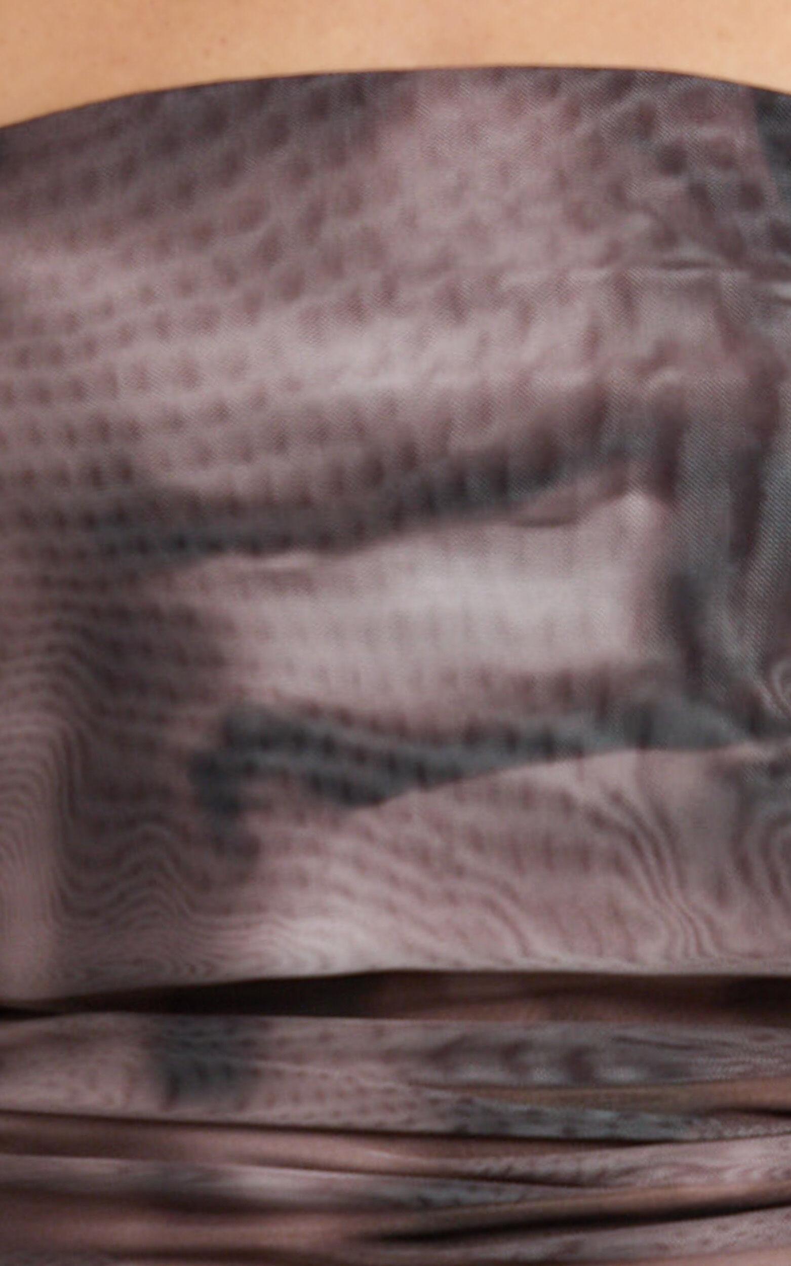 Jambee Top - Long Sleeve Off Shoulder Ruched Mesh Top in Brown Multi