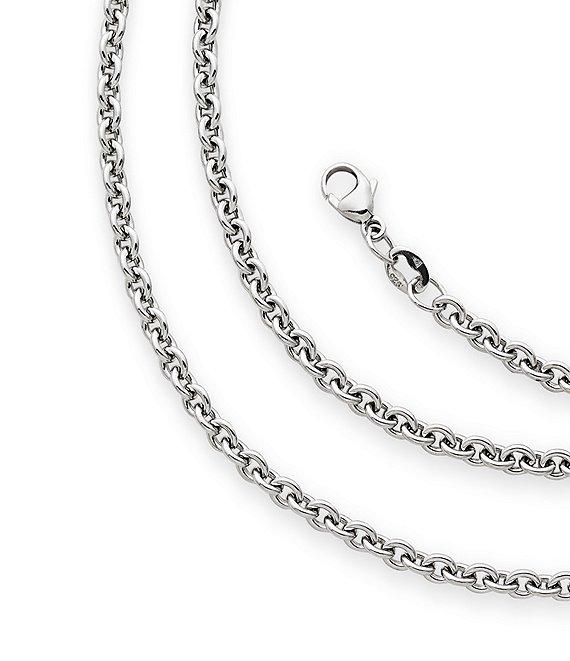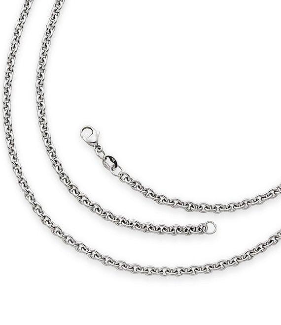 From James Avery, this chain features: This artfully-crafted cable chain is a great complement for a favorite charm or pendant. sterling silver lobster claw closure Crafted in America using the world's finest materials. Due to the personalized nature of James Avery necklaces, we are unable to attach charms and customize your design at Dillards.com. Please visit the nearest James Avery store or the James Avery counter at select Dillard's locations to have your new James Avery charm attached at no extra charge. Most local jewelers will also attach the charms for a small fee.