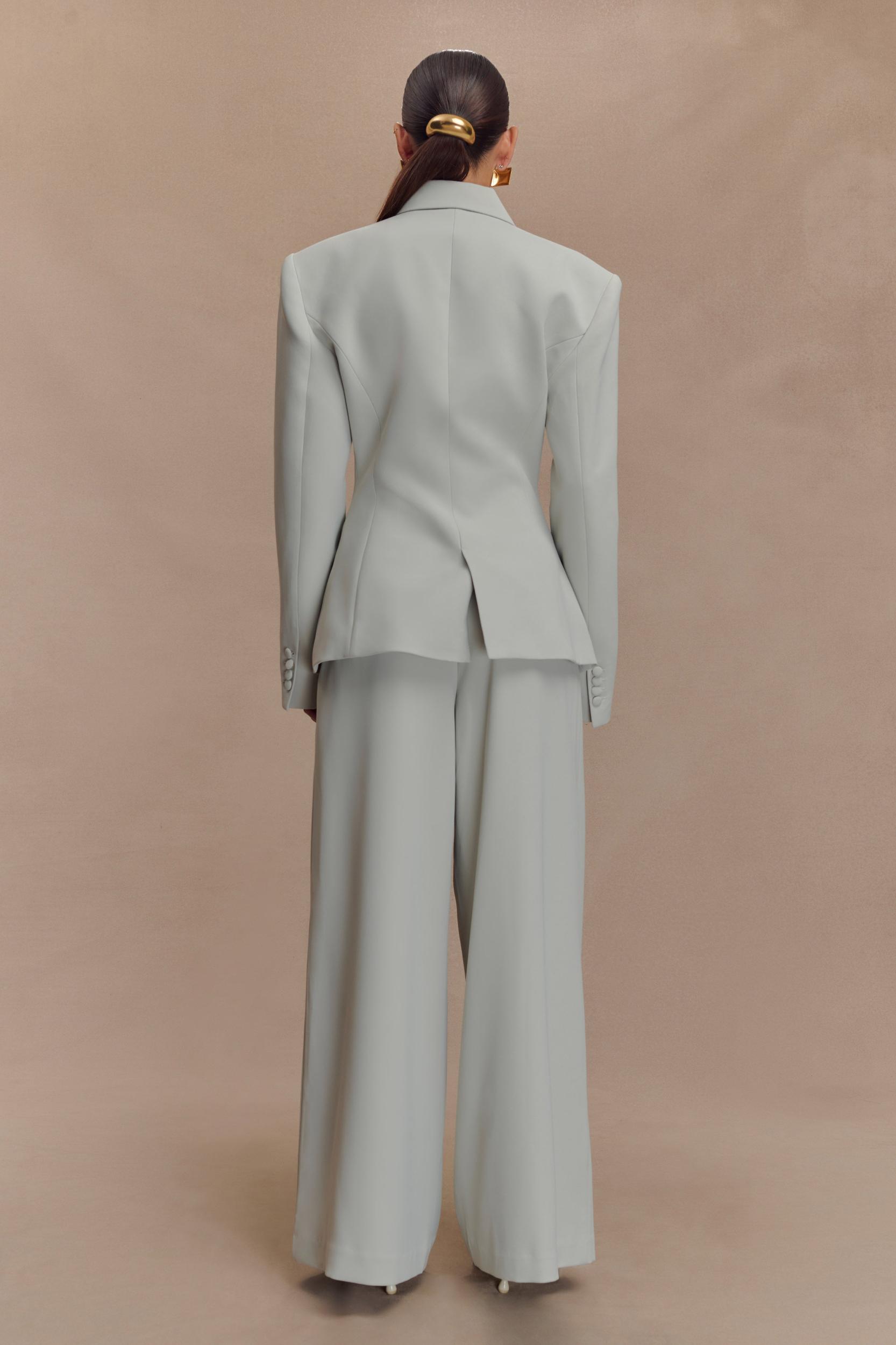 Wide leg, sharp finish. The JAMESON Pleated Wide Leg Pants bring timeless tailoring to modern proportions. Designed with a high waisted fit and a wide waistband, these full-length pants feature front pleats and a relaxed wide leg for fluid movement and all-day comfort. Finished with side pockets, back welt pockets, and belt loops for styling versatility, this unlined design offers lightweight structure with a soft, tailored feel. Pair with the Jameson Cinched Suiting Blazer for a refined set that exudes confidence and understated sophistication.