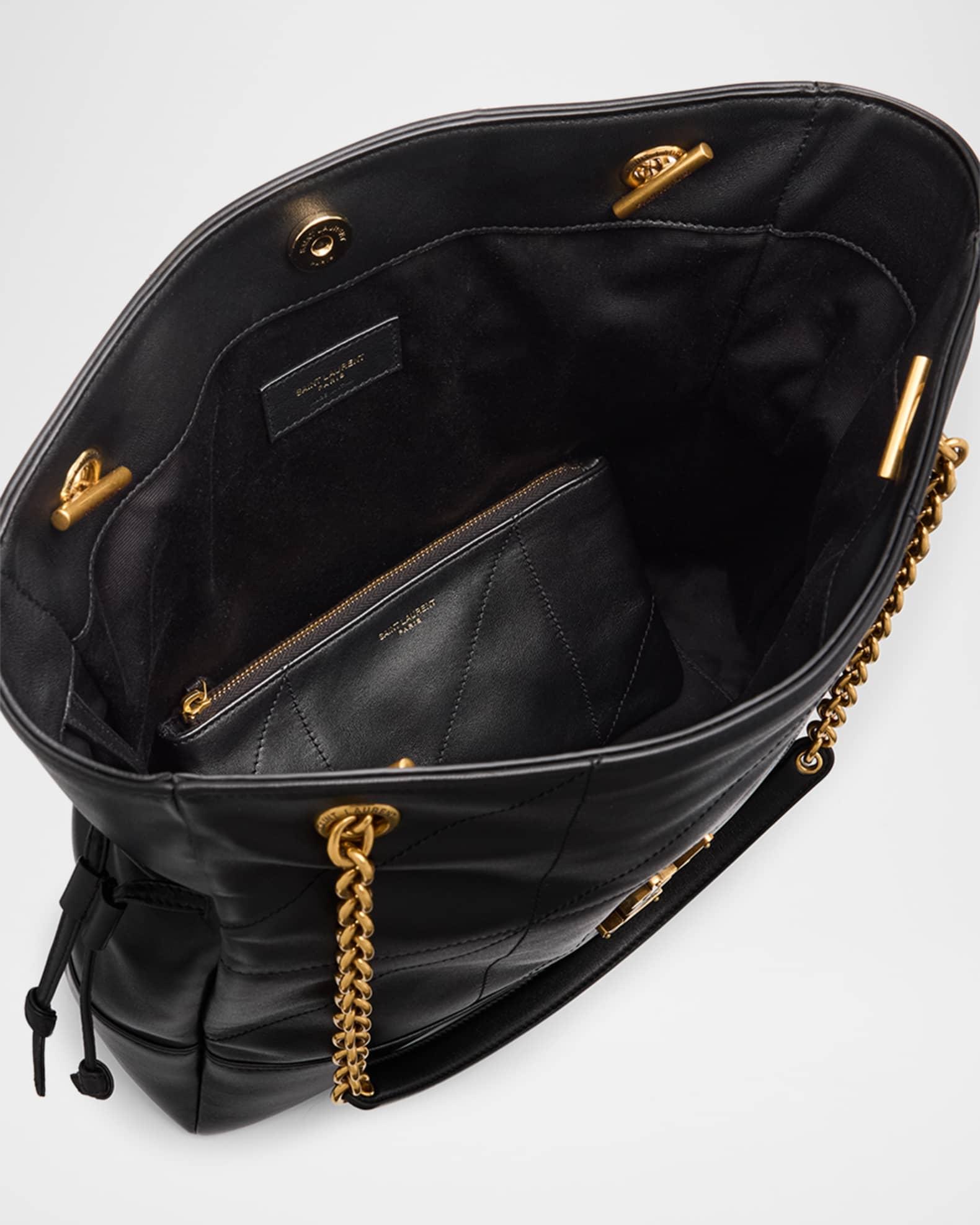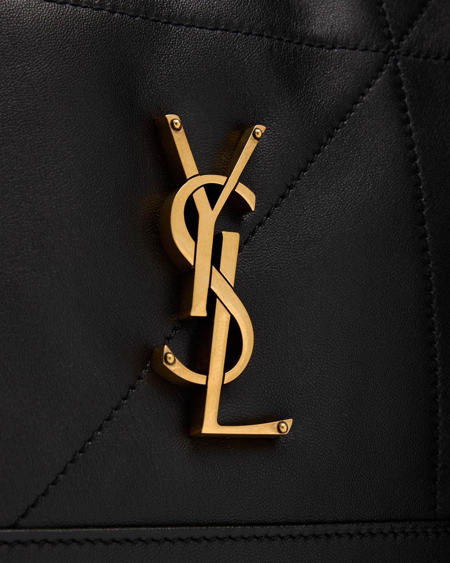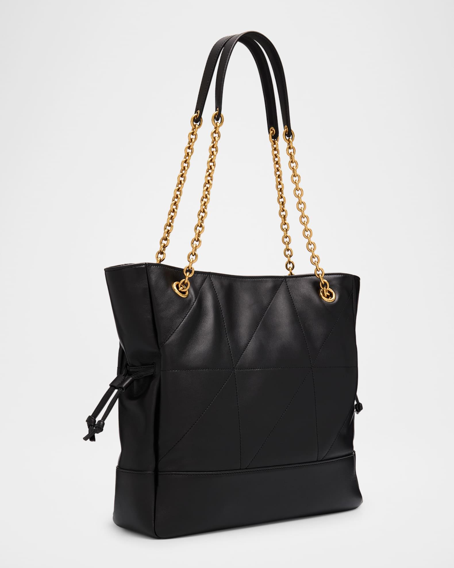 Saint Laurent "Jamie 4.3" tote bag in quilted leather Features signature YSL logo lettering Chain/leather shoulder straps Open top with magnetic closure Exterior, side drawstring accents Interior, leashed zip pouch bag Light bronze hardware Approx. 13.7"H x 13.7"W x 3.9"D Made in Italy