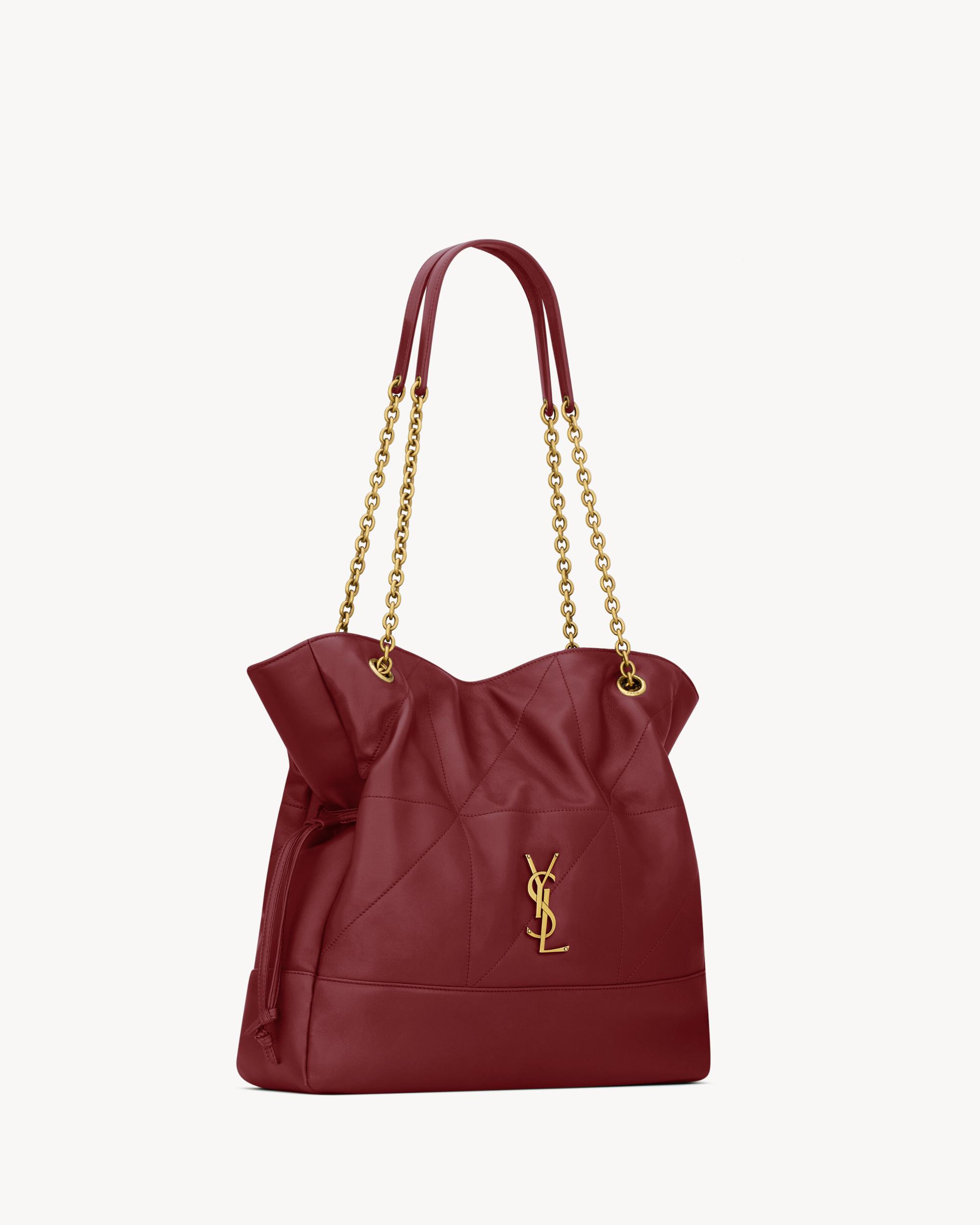 The shopping version of the JAMIE in supple nappa, decorated with the CASSANDRE and CARRÉ RIVE GAUCHE topstitching.This lightweight and spacious bag features a chain strap and removable zip pouch.A chain and drawstring ties allow the sides to be cinched or expanded to create different silhouettes.