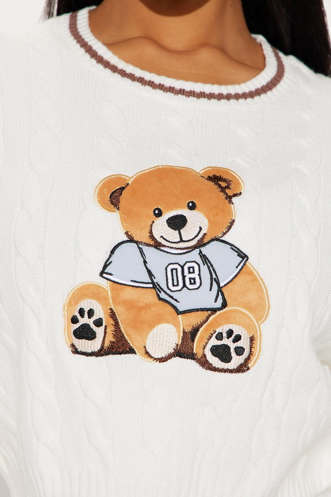 Jana Cable Knit Bear Sweater - Ivory/combo