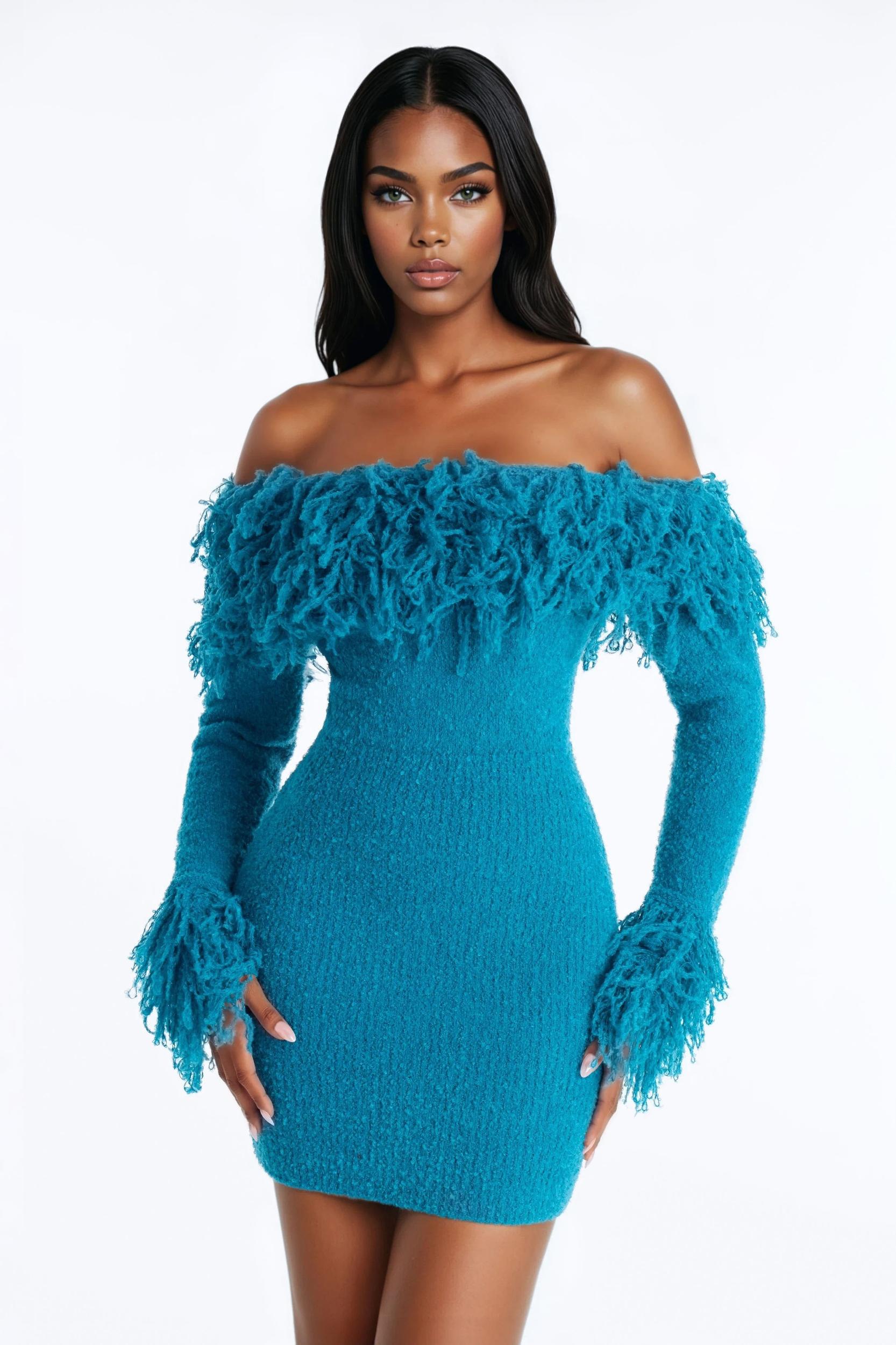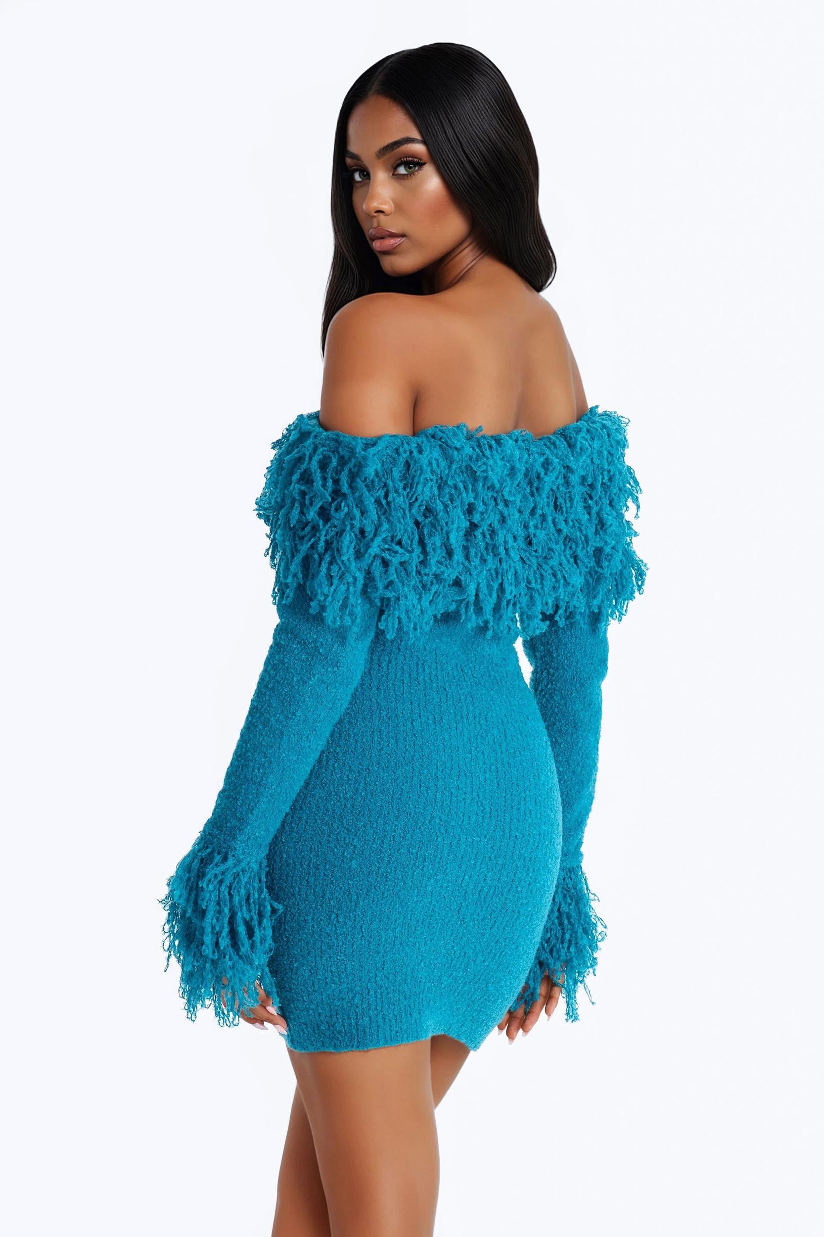 Jane Long Sleeve Sweater Mini Dress - Blue Female
