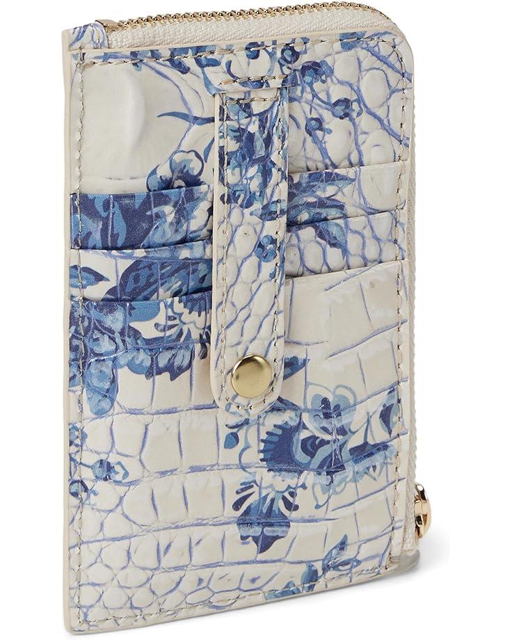 A modern and compact update to a traditional credit card wallet, the Brahmin® Lennon wallet features a 3/4 zip-around compartment for change or additional cards. The snap tab on the back of the wallet gives added security. Made of leather, this hand wallet has six credit card slots. Organize money and cards in one place using this leather wallet.