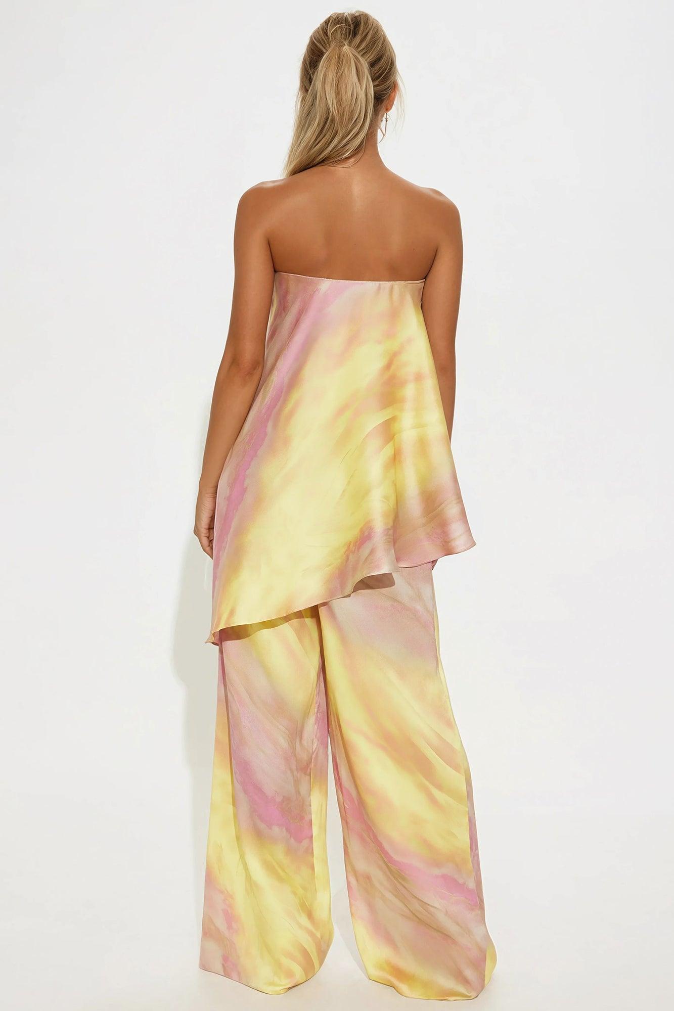 Janessa Satin Tie Dye Jumpsuit - Yellow/combo