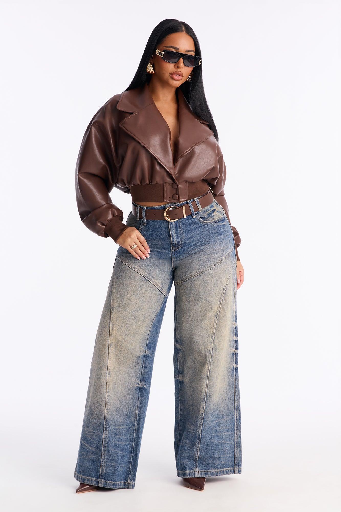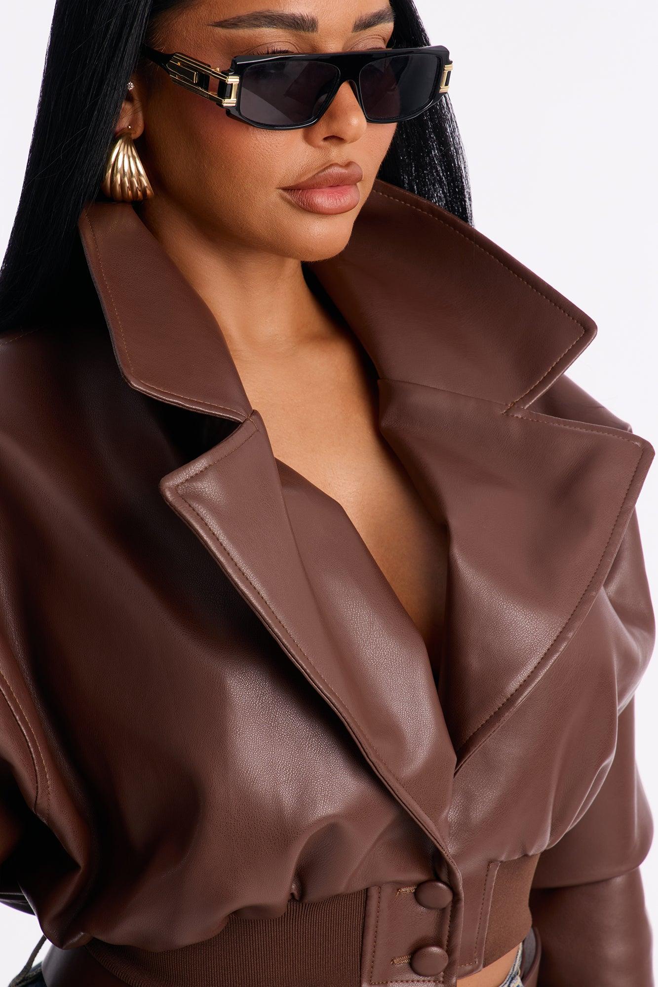 Janet Cropped Faux Leather Moto Jacket - Brown Female