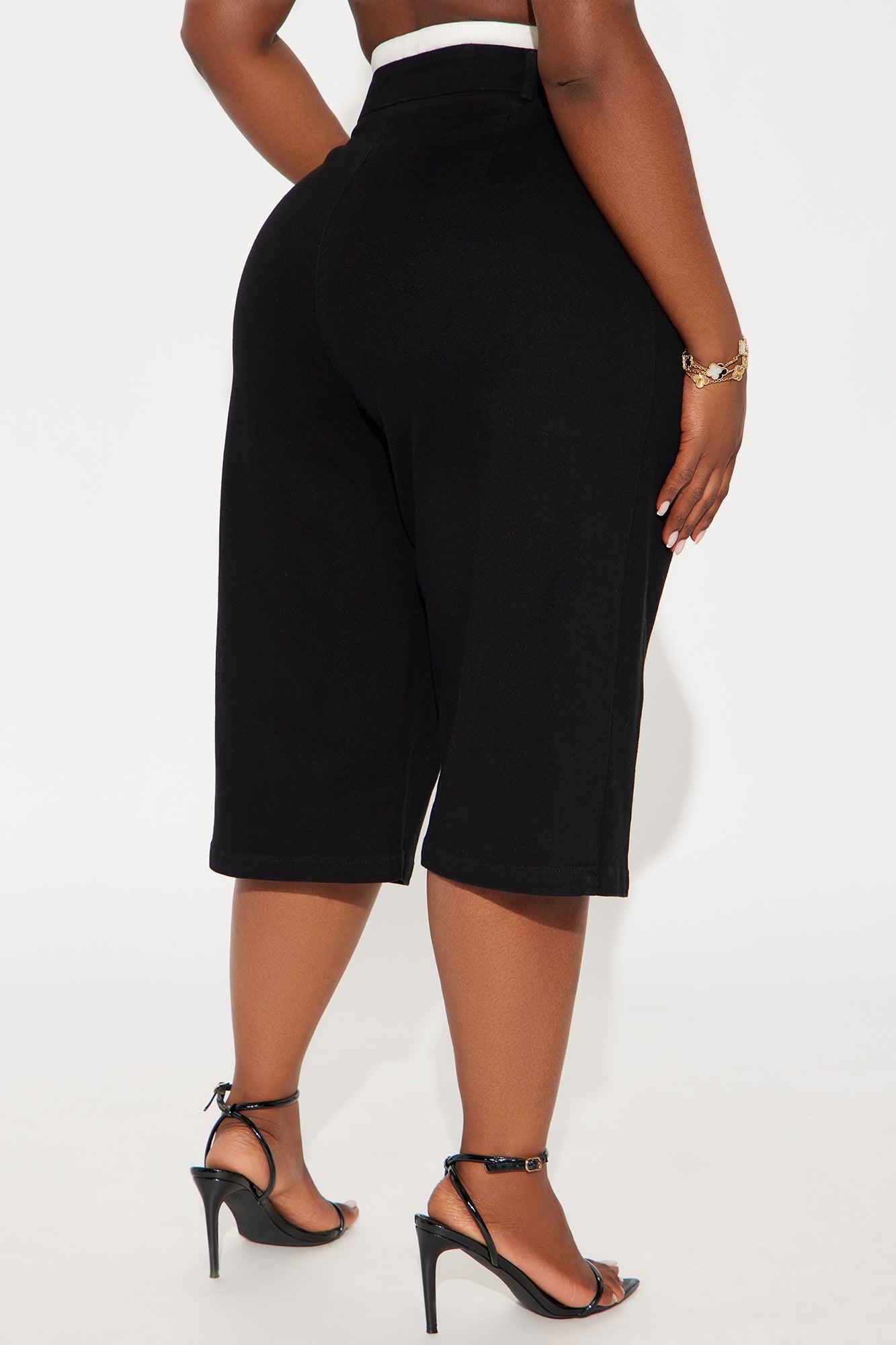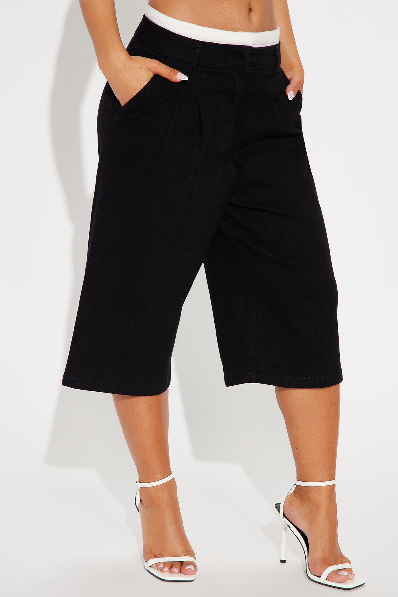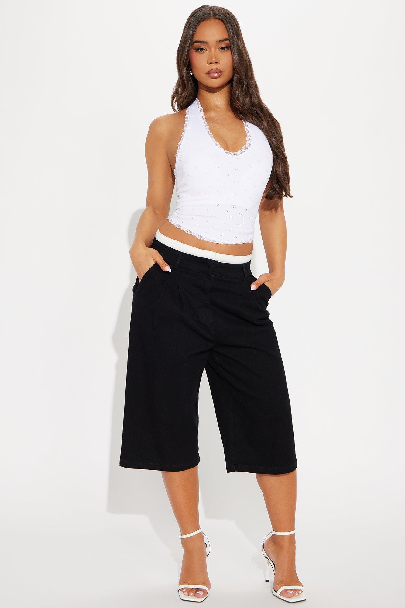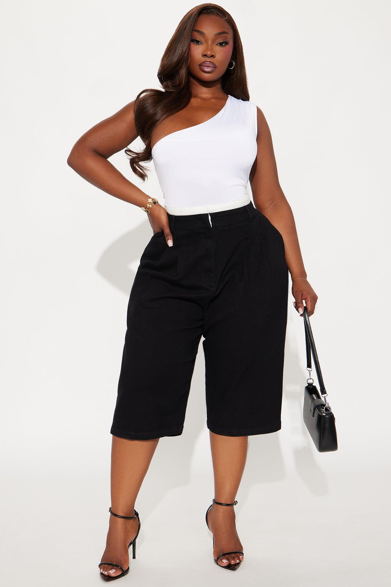 Available In Black And Grey. Bermuda Short High Rise Zip Fly With Hook and Bar Closure Hand Pockets Double Waistband Detail Pleated Front Stretch Self : 97% Cotton 3% Spandex Imported California Proposition 65WARNING: Cancer and Reproductive Harm - www.P65Warnings.ca.gov.