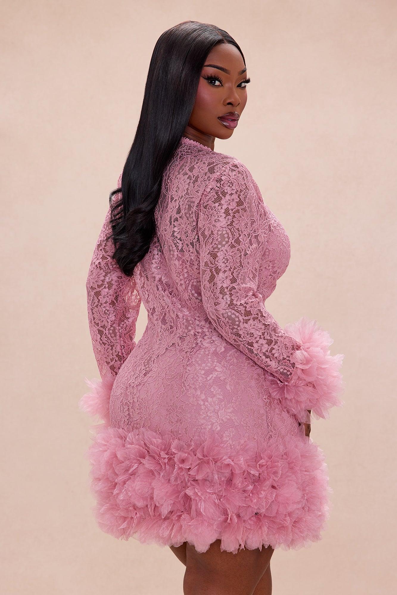 Janice 3D Applique Lace Mini Dress - Mauve Female