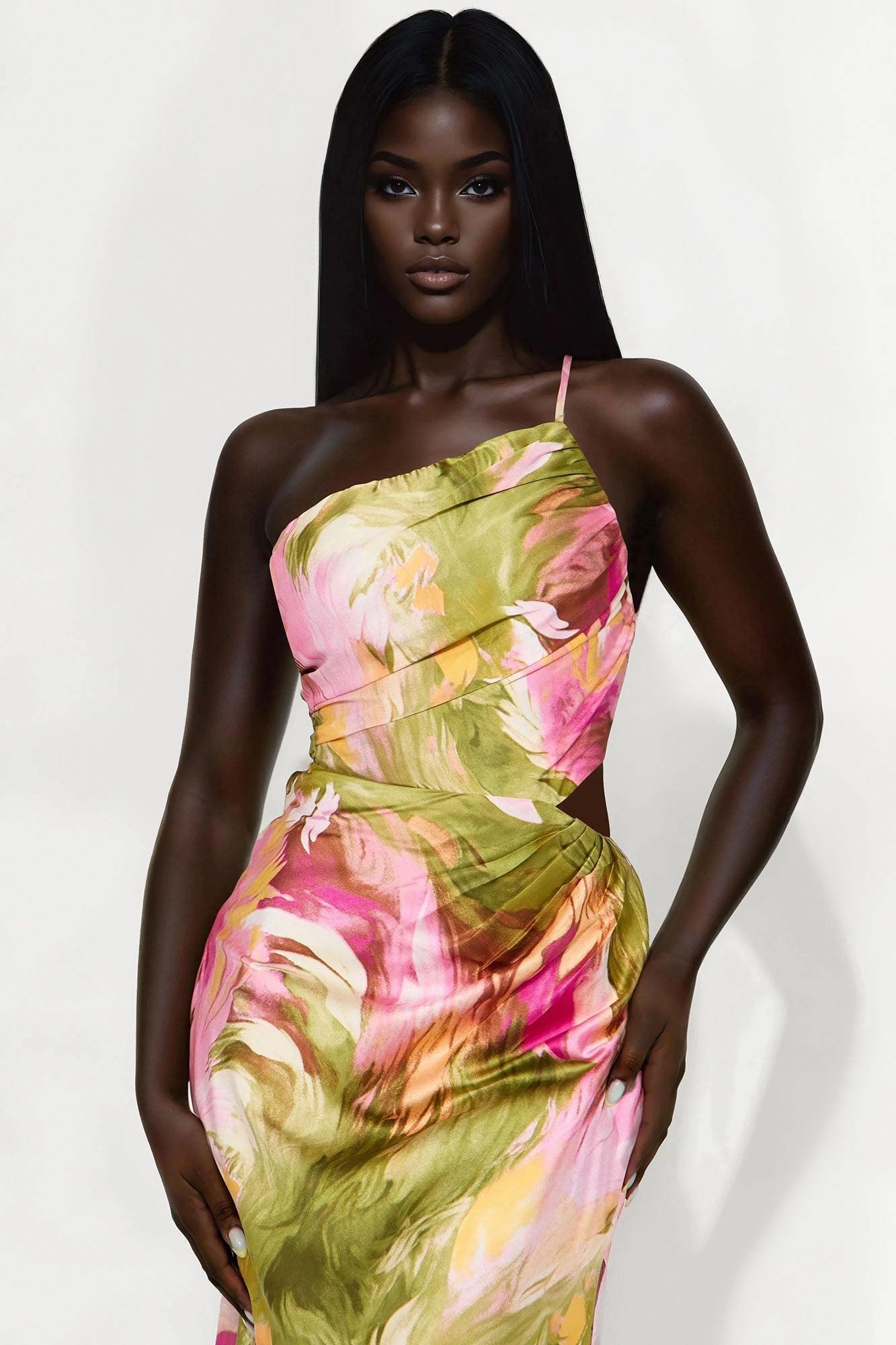Janice Satin Maxi Dress - Olive/combo