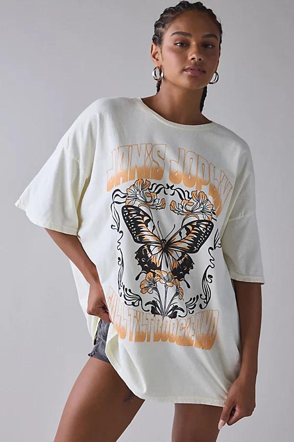 Your new favorite t-shirt dress topped with Janis Joplin butterfly graphics across the front. The perfect tee designed in a slouchy fit thats perfect as an oversized graphic tee or mini dress. Only at Urban Outfitters. Features Janis Joplin butterfly graphic cotton t-shirt dress Oversized graphic tee Crew neckline with drop shoulders and short sleeves Janis Joplin and butterfly graphics across the front Slouchy, oversized fit Tunic length Easy pull-over style UO exclusive Content + Care 100% Co