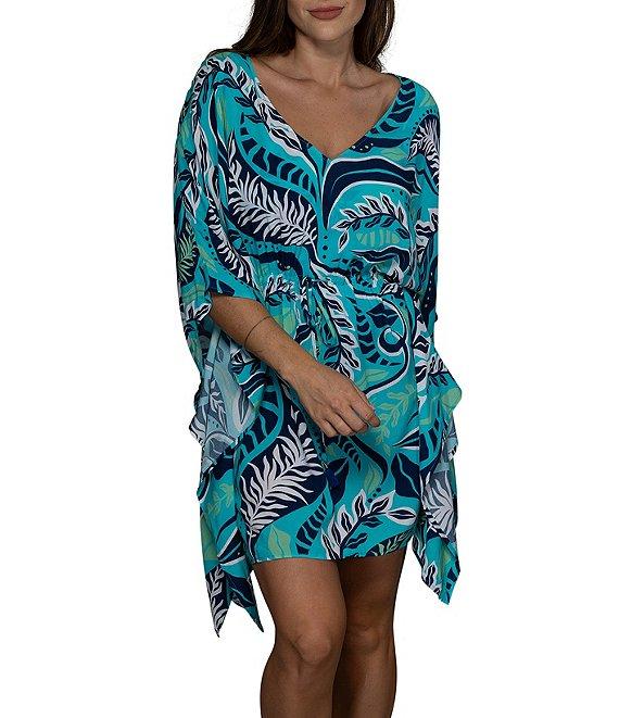 Jantzen Garden V-Neck Ruffle Trim Tunic Swim Cover-Up