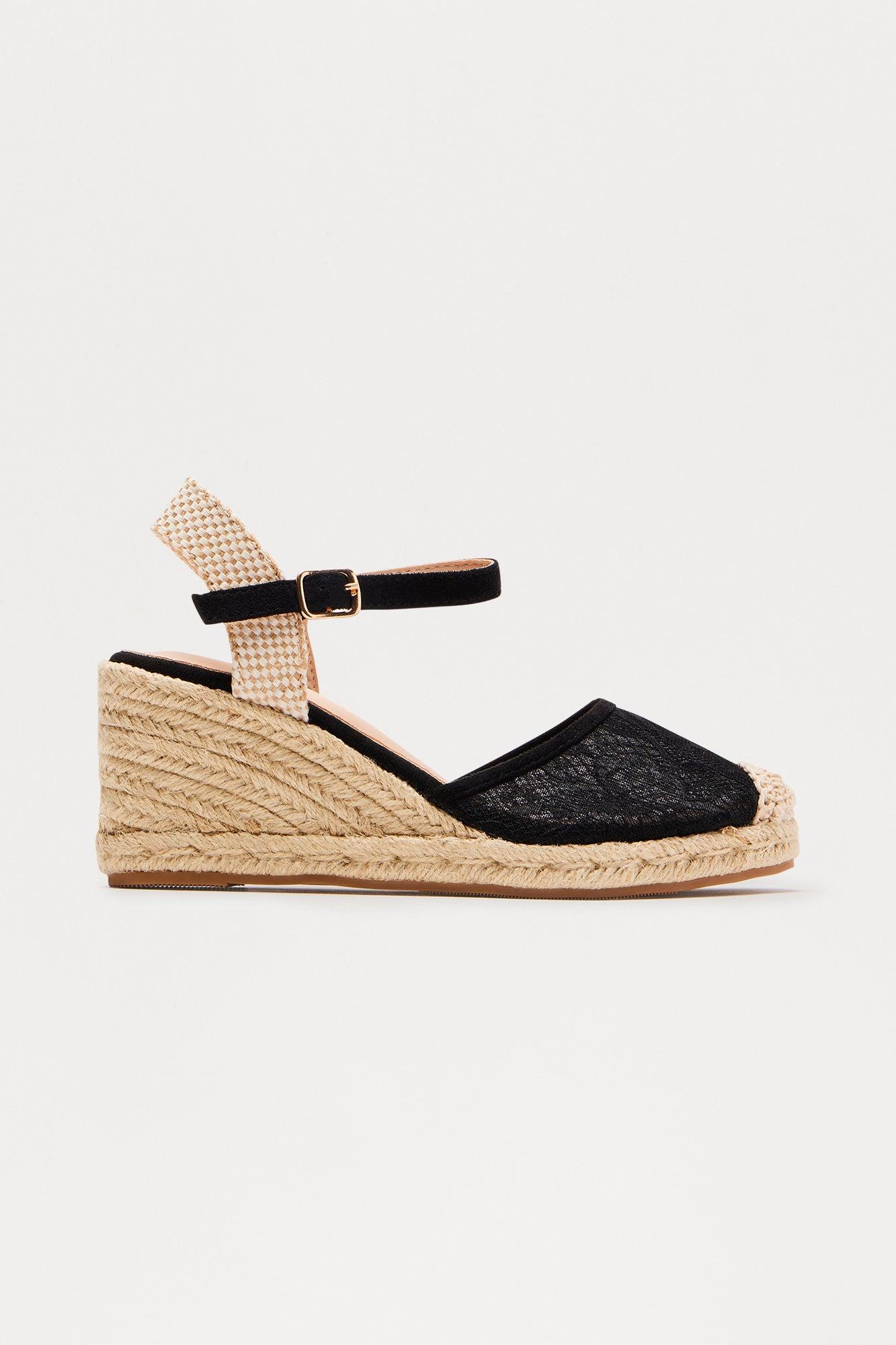 Jany Lace Jute Wedges - Black Female