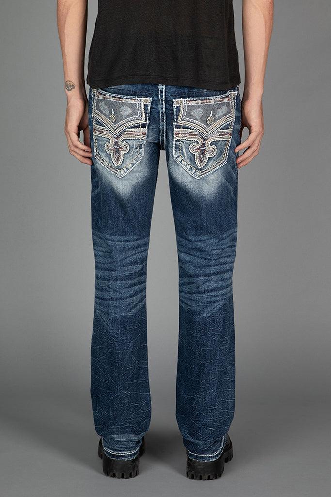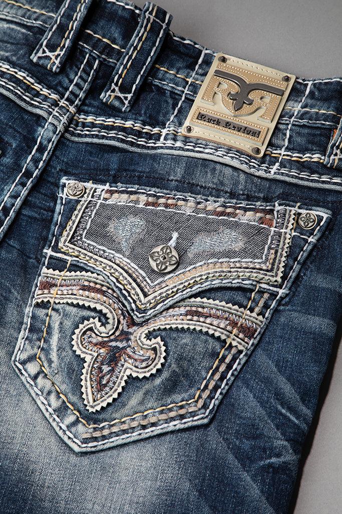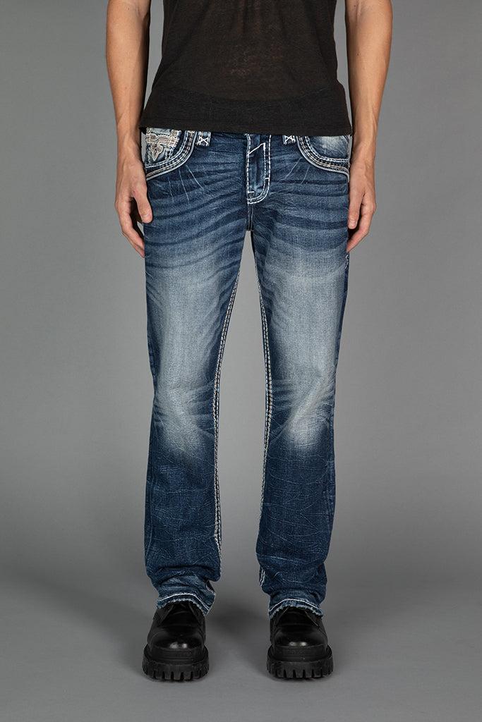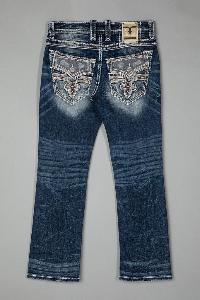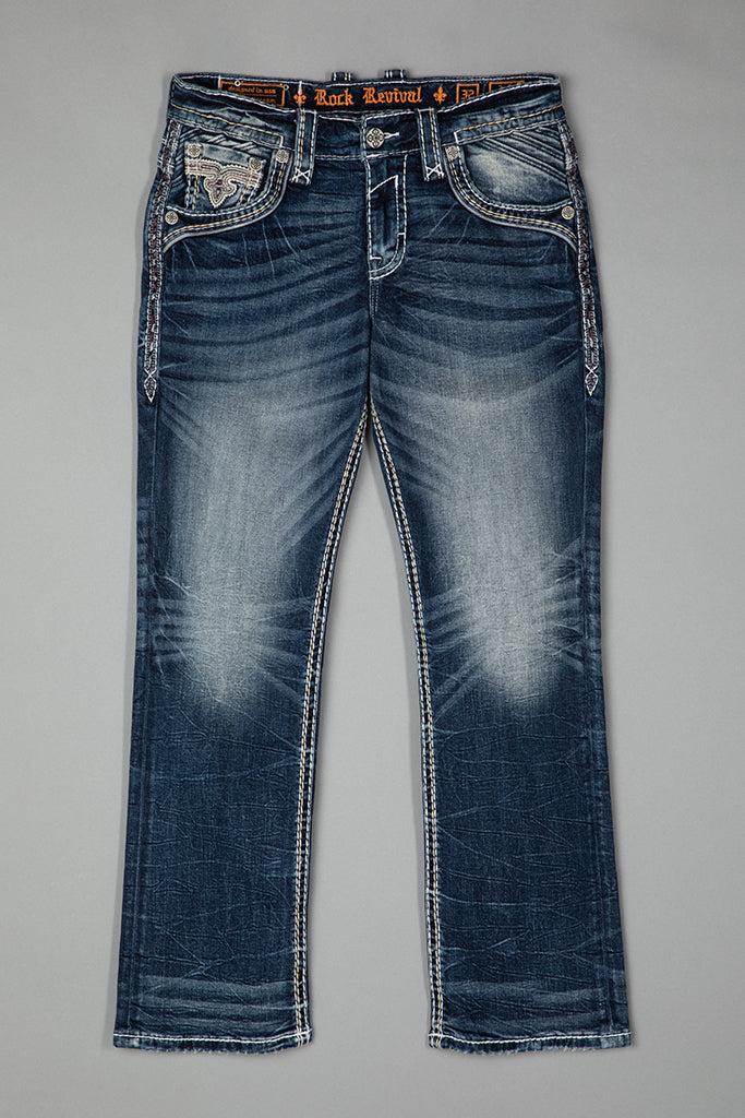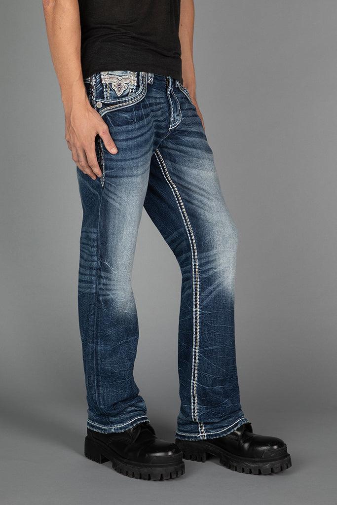 Jared Bootcut Jeans by Rock Revival with a bootcut silhouette crafted in a medium wash, designed in Los Angeles.