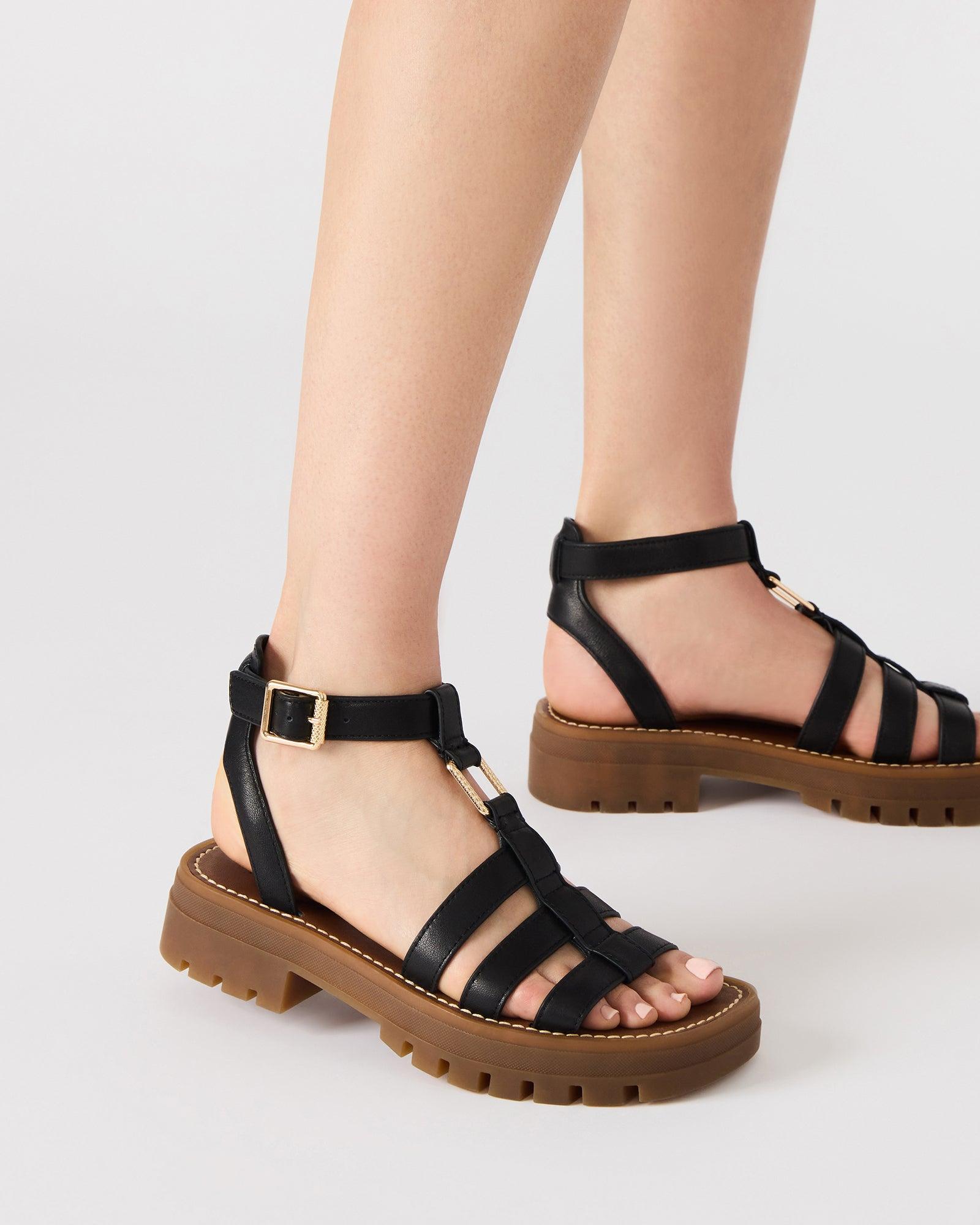 Elevate your style with the JARELLI sandal. Featuring a strappy square-toe design and platform, this sandal offers the perfect combination of comfort and chic. Take your look to new heights with these versatile and fashionable sandals. 1.5 inch heel height 1 inch platform Leather upper material Synthetic lining Synthetic sock Synthetic sole Padded insole for comfort with a flexible bottom Fit tip: If you are in between sizes, size down a half-size Imported