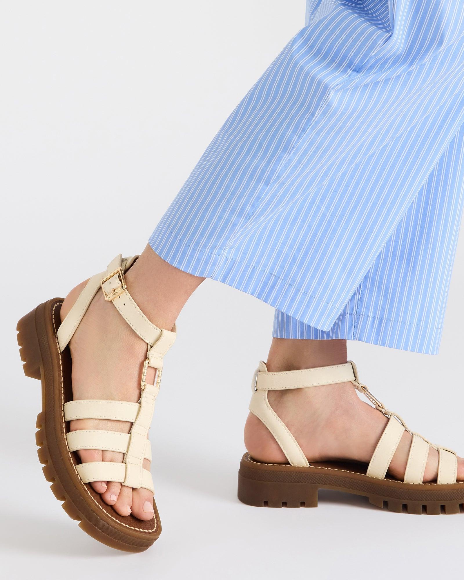 Elevate your style with the JARELLI sandal. Featuring a strappy square-toe design and platform, this sandal offers the perfect combination of comfort and chic. Take your look to new heights with these versatile and fashionable sandals. 1.5 inch heel height 1 inch platform Leather upper material Synthetic lining Synthetic sock Synthetic sole Padded insole for comfort with a flexible bottom Fit tip: If you are in between sizes, size down a half-size Imported