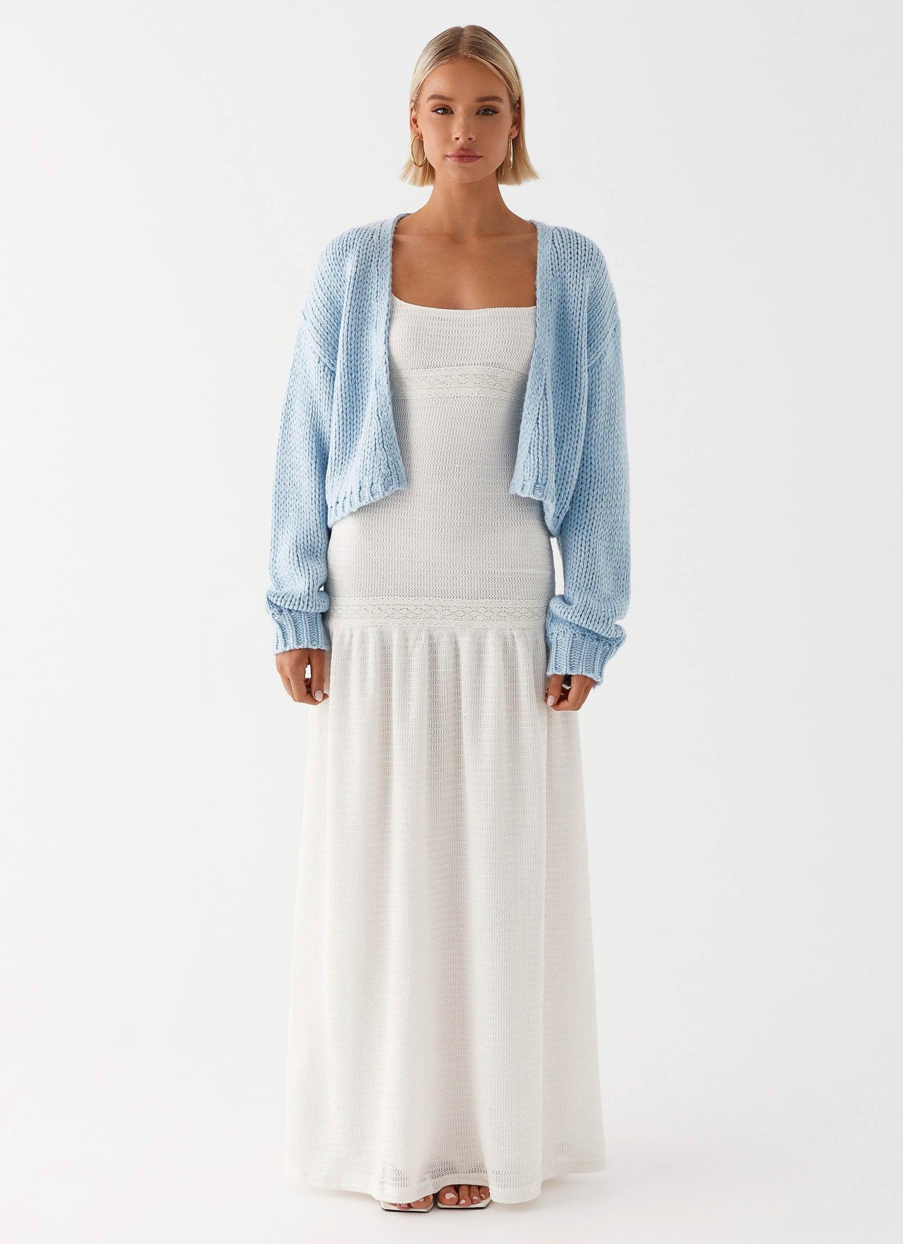 Peppermayo Exclusive Wrap up in effortless style with the Jasleen Knit Cardigan. Its oversized fit and balloon cuffs create a relaxed silhouette, while the chunky knit ensures cozy comfort. Perfect for those balmy nights or adding a touch of laid-back chic to your look. - Oversized fit- Balloon cuffs- Chunky knit- Ribbed cuffs- Unlined- 100% Acrylic Size AU 8 / US 4 garment measurements: Shoulder: 120 cm / 47.2 inBust: 112 cm / 44.1 inHem: 96 cm / 37.8 inSleeve length: 52 cm / 20.5 inLength: 50 cm / 19.7 in Annalise is 176cm and wearing a size AU 8 / and US 4