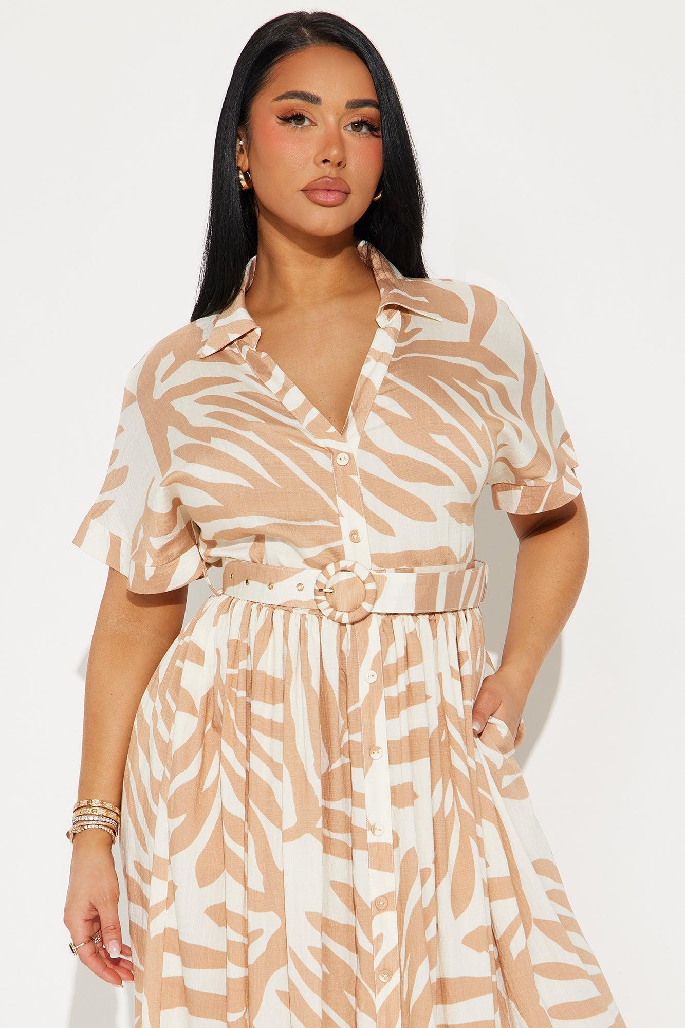 Available In Black/combo And Taupe/combo. Printed Shirt Dress Collar Short Sleeves Button Front Belted Pockets Elastic Waist Stretch Disclaimer: Print Placement May Vary Self: 97% Polyester 3% Spandex Imported California Proposition 65WARNING: Cancer and Reproductive Harm - www.P65Warnings.ca.gov.