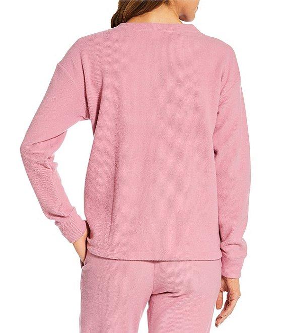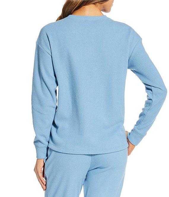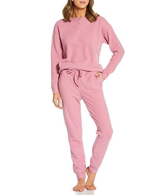 Jasmine & Ginger Solid Brushed Waffle Long Sleeve Henley Coordinating Sleep Top