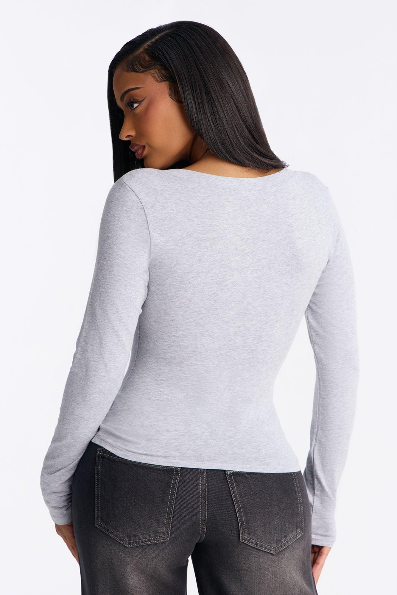 Jasmine V Neck Everyday Long Sleeve Top - Heather Grey Female