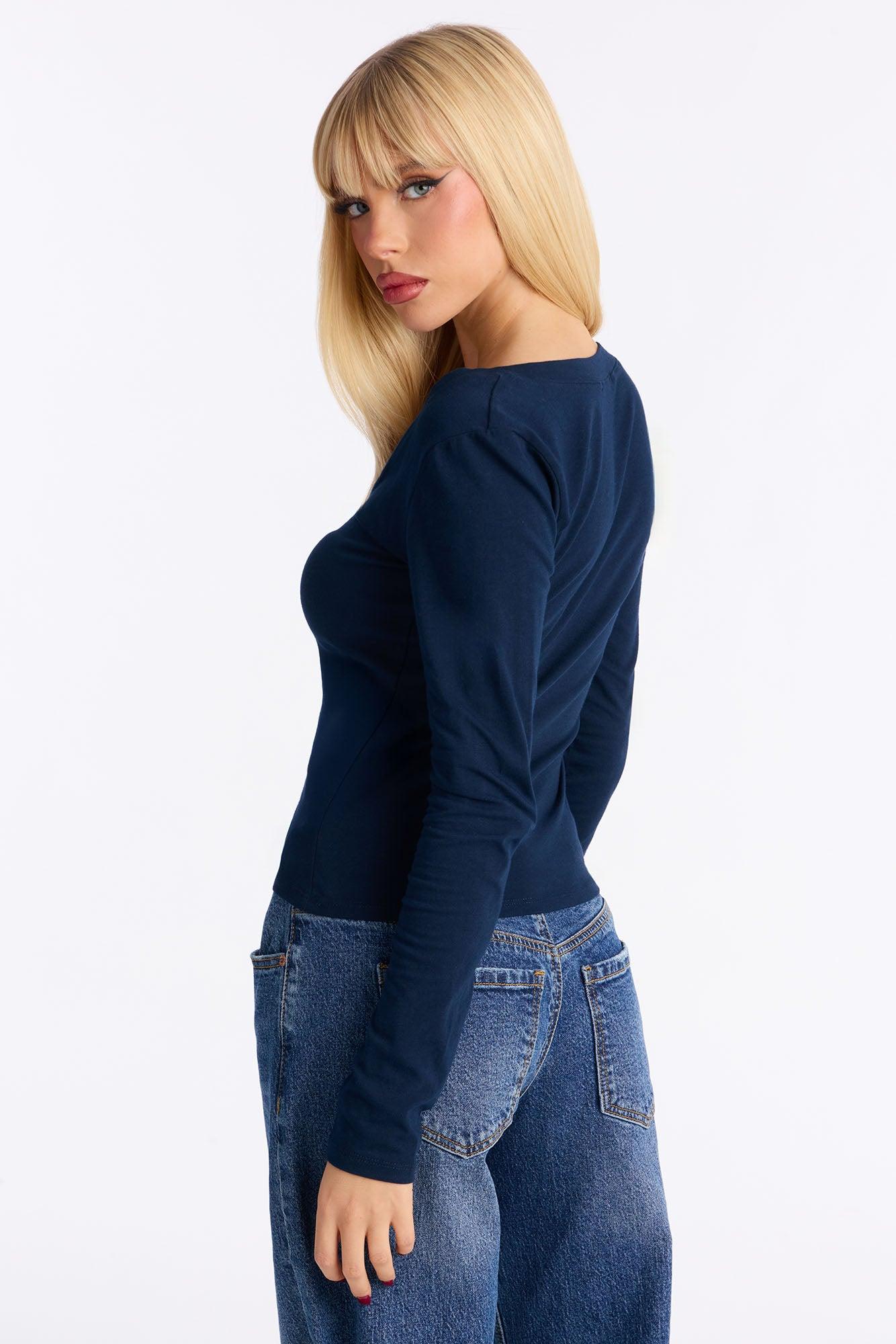Jasmine V Neck Everyday Long Sleeve Top - Navy Female