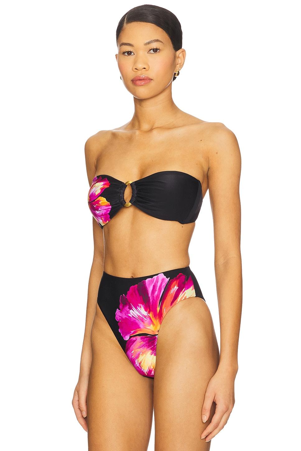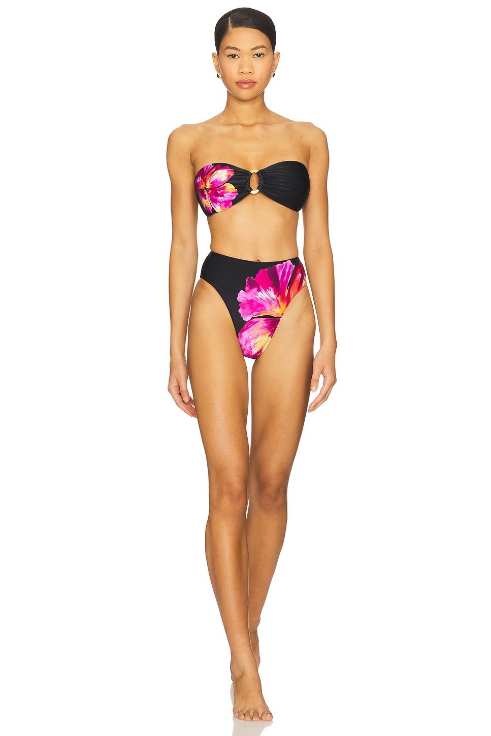 83% micro nylon, 17% spandex. Hand wash cold. Padded cups. Back self-tie closure. Front metal accent. Midweight jersey swimwear fabric with floral print. Item not sold as set. Made in China. Revolve Style No. LSPA-WX2173. Manufacturer Style No. LSJST24P.