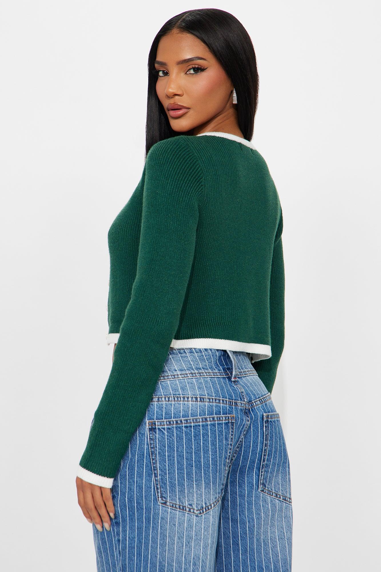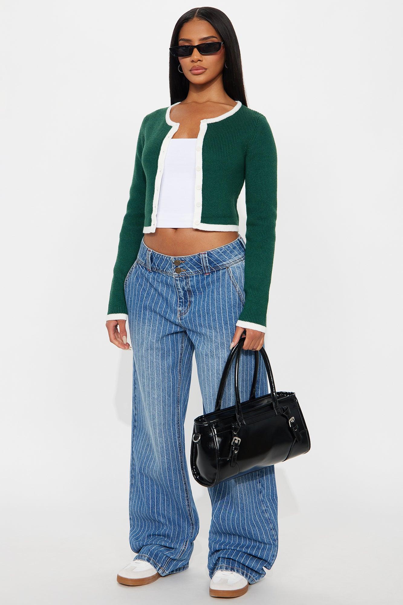 Jaszy Contrast Cardigan - Green/combo