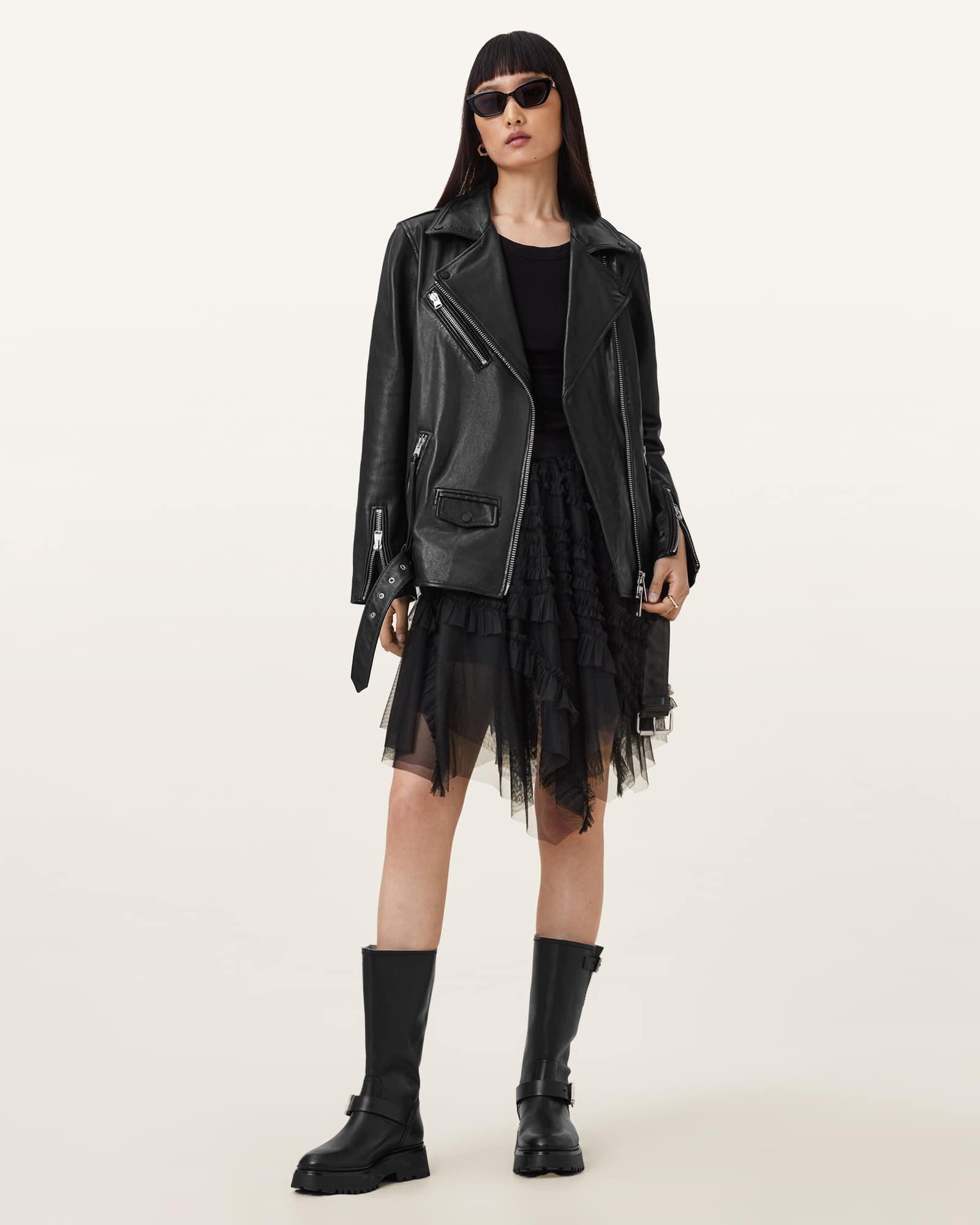 Jayde Ruffled Tulle Mini Skirt Black | ALLSAINTS US