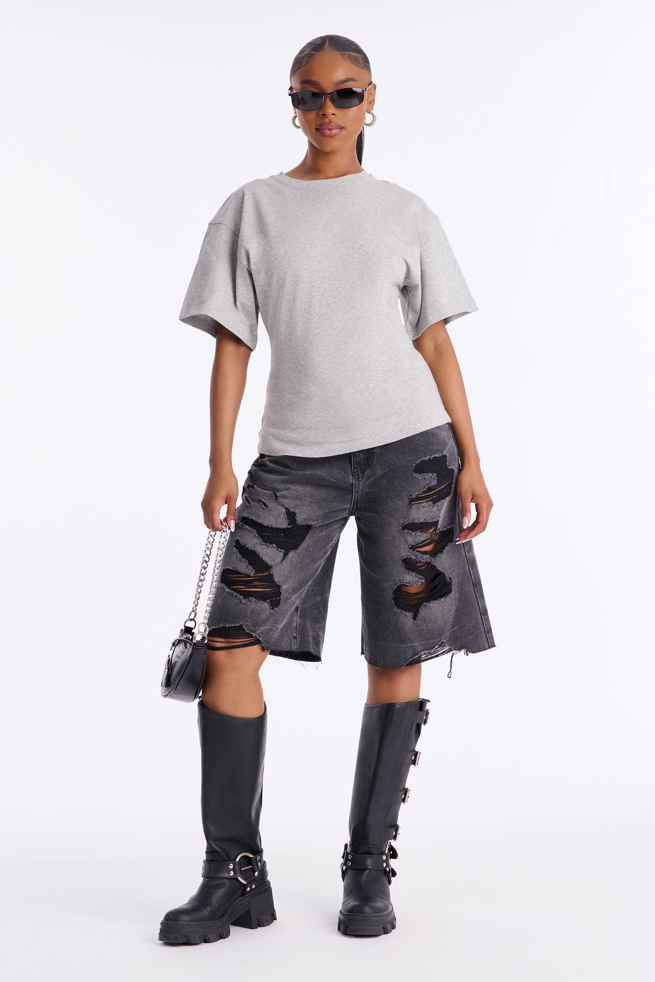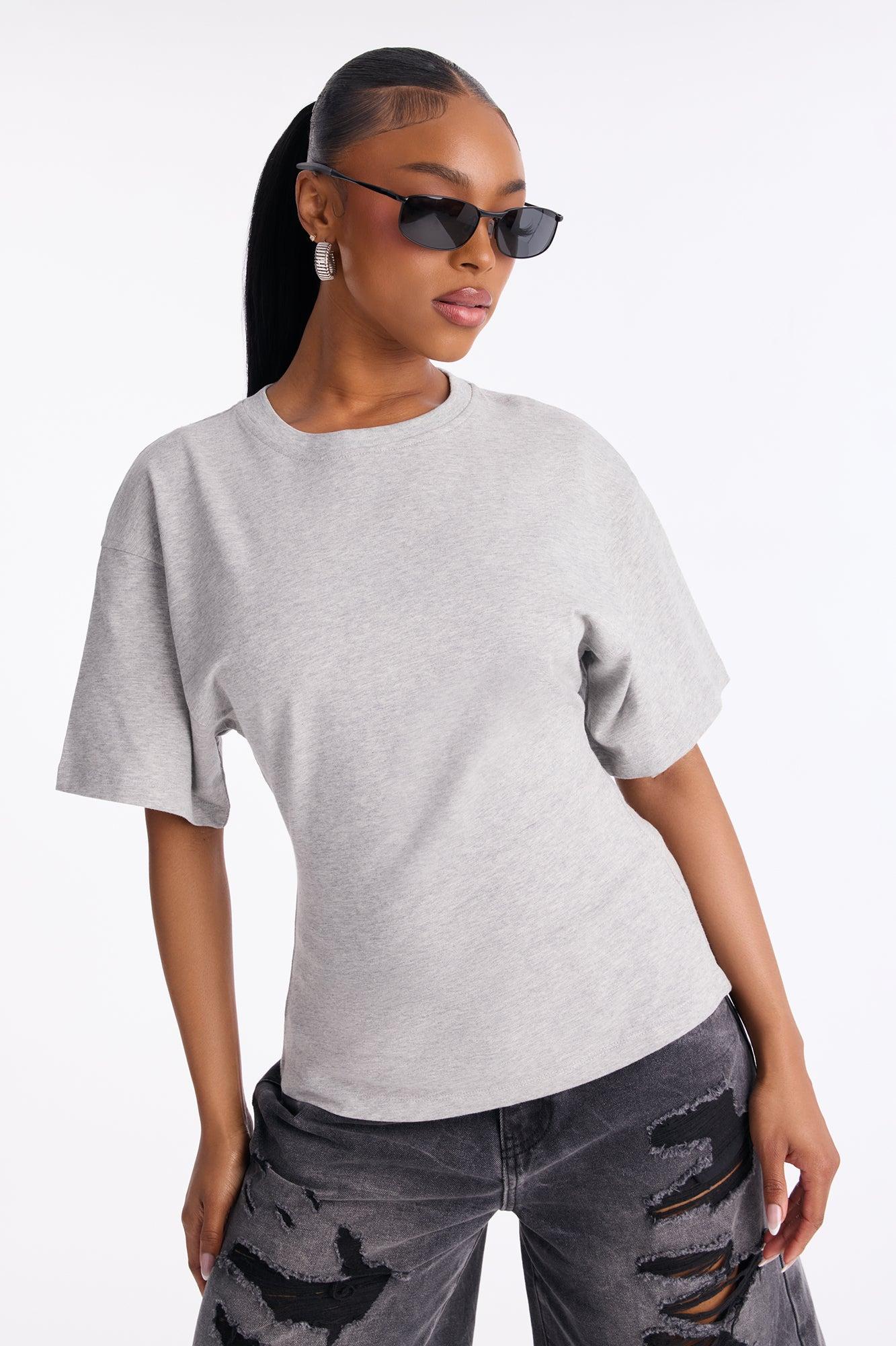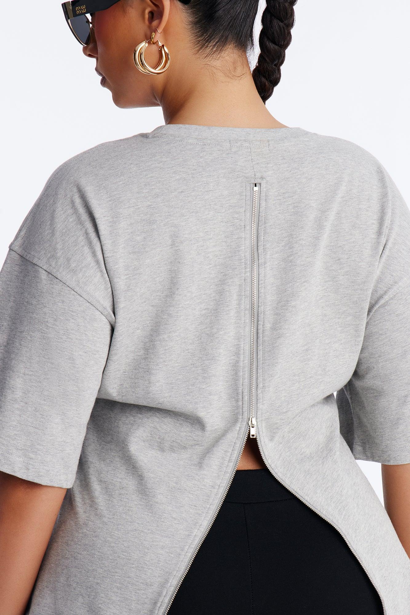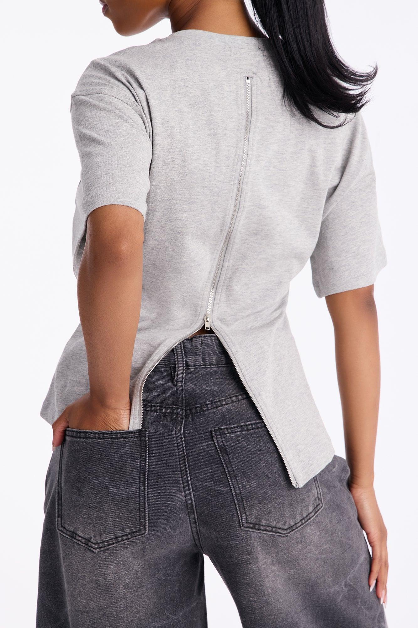 Available In Black, Brown, Butter Yellow, Charcoal, Heather Grey, Mocha, Olive, Periwinkle, Stone And White. Fitted T-Shirt Crew Neck Short Sleeve Back Zipper Detail Stretch Self : 100% Cotton Imported California Proposition 65WARNING: Cancer and Reproductive Harm - www.P65Warnings.ca.gov.