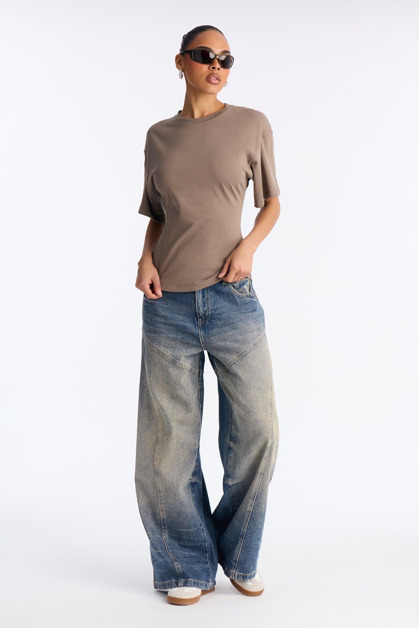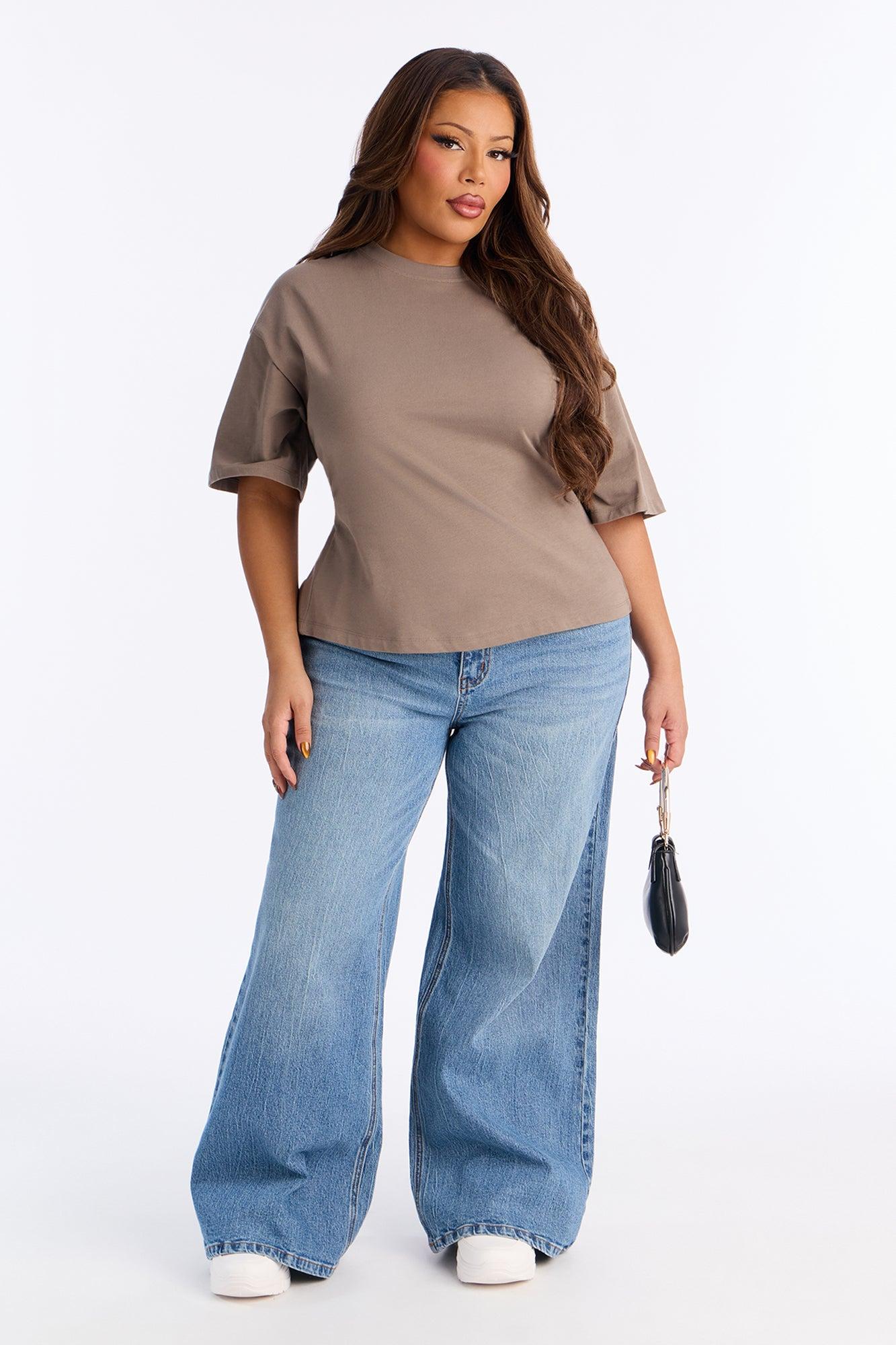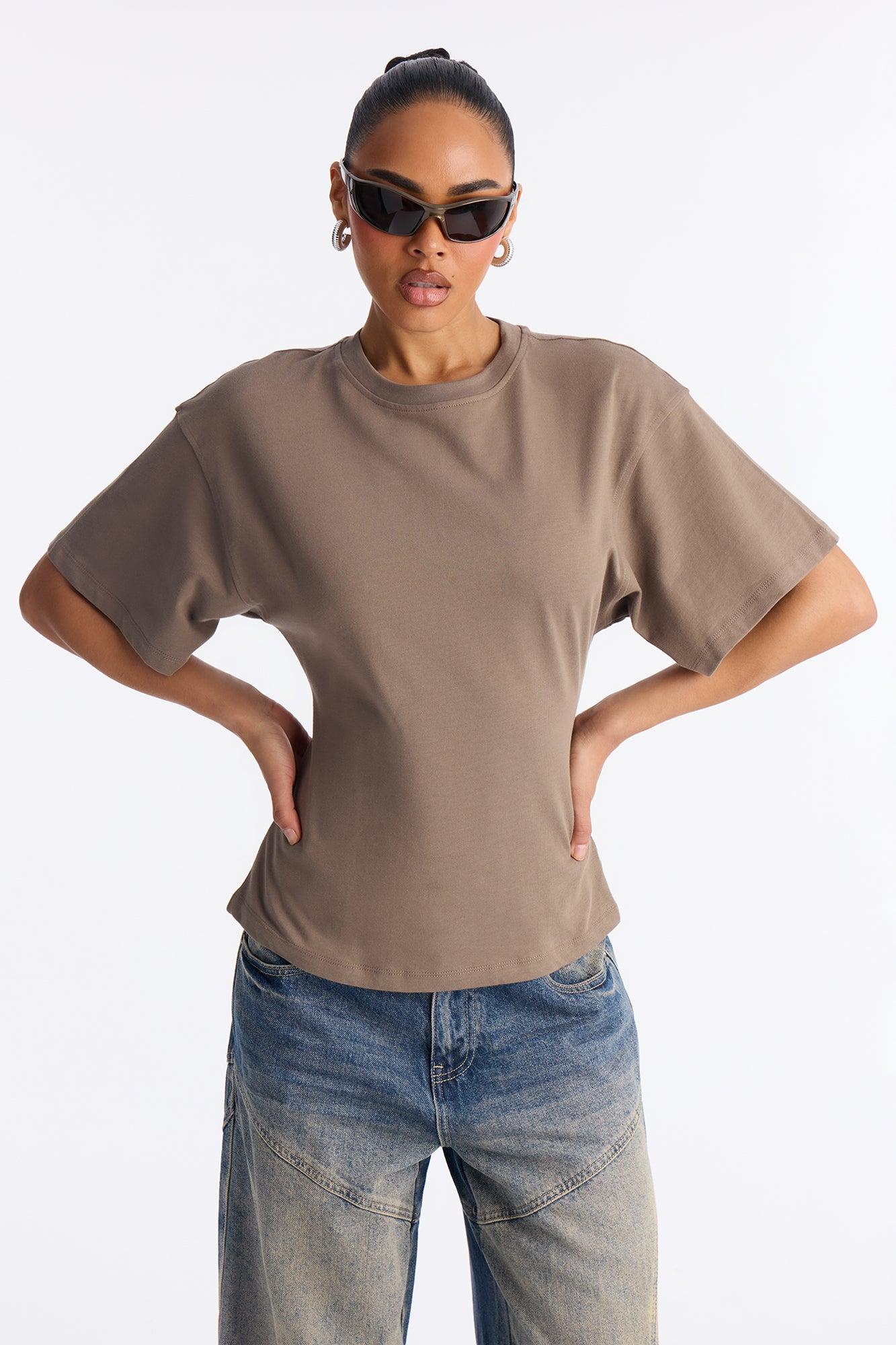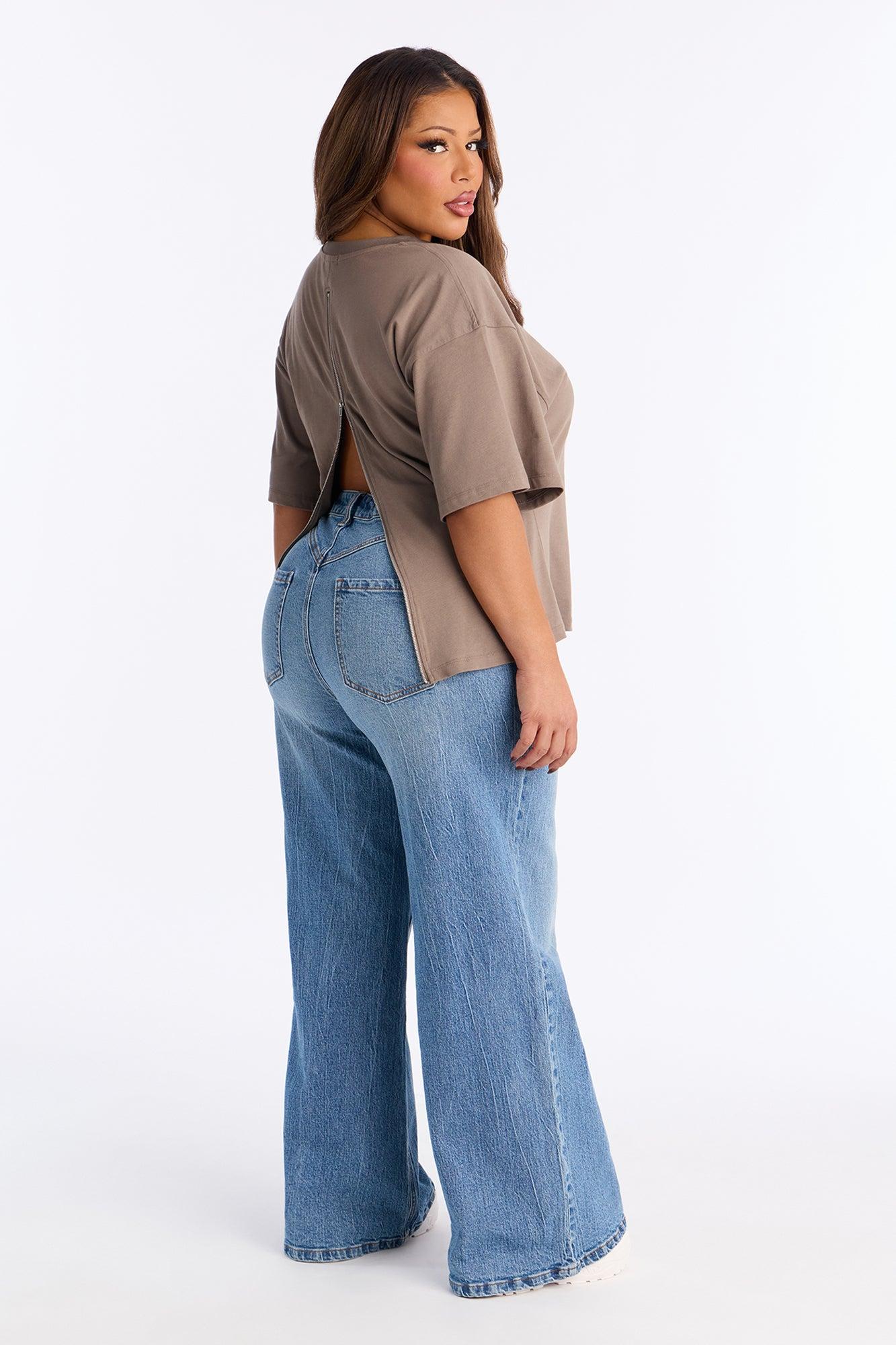 Available In Black, Brown, Butter Yellow, Charcoal, Heather Grey, Mocha, Olive, Periwinkle, Stone And White. Fitted T-Shirt Crew Neck Short Sleeve Back Zipper Detail Stretch Self : 100% Cotton Imported California Proposition 65WARNING: Cancer and Reproductive Harm - www.P65Warnings.ca.gov.
