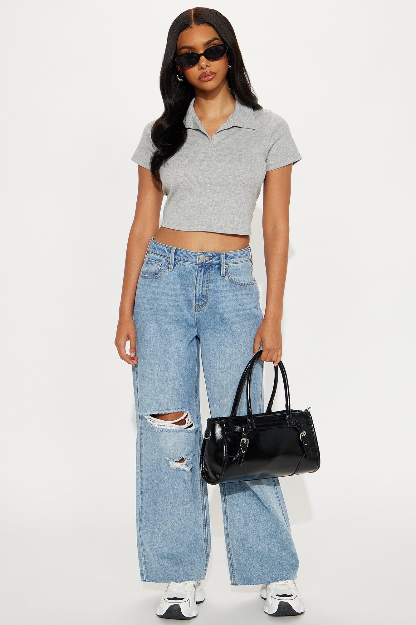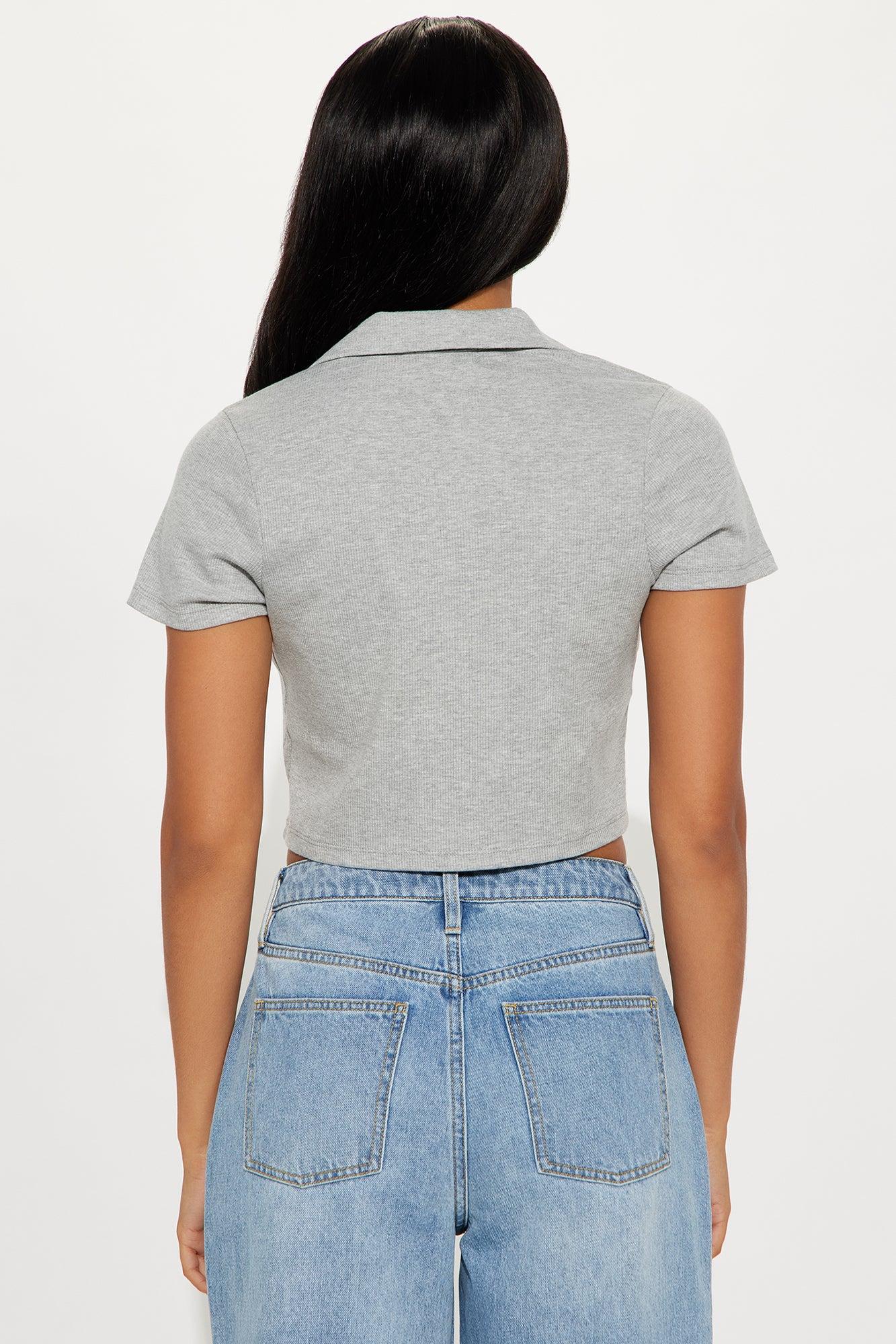 Jayla Cropped Short Sleeve Polo - Heather Grey Female
