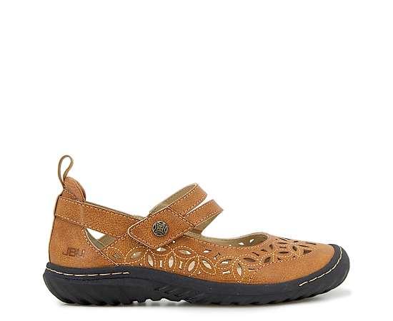 JBU Bellerose Encore Women s Euro Clog Put a spring in your step with the JBU Bellerose Encore women s Euro Clog. With a faux leather upper and petal-inspired cutouts for flirty breathability, this Shoe features a hook & loop closure that allows for a secure fit. The Memory Foam insole cushions your foot, while the All Terra outsole provides slip-resistant traction for all-day wear. Synthetic upper Hook/loop closure Microsuede liningMemory foam insoleAll Terra traction outsole