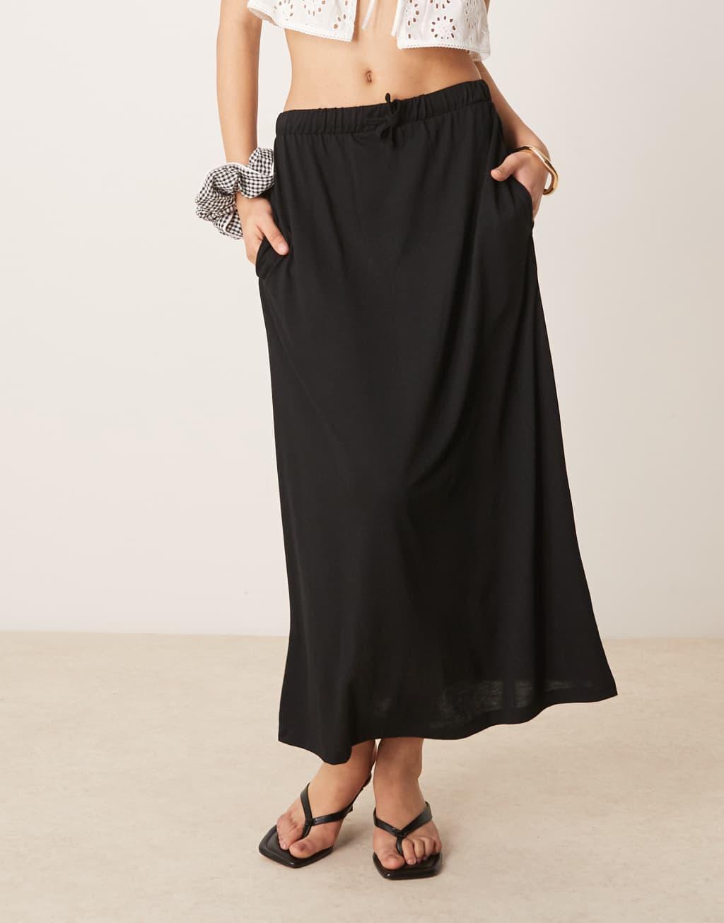 JDY tie detail flowy midi skirt in black