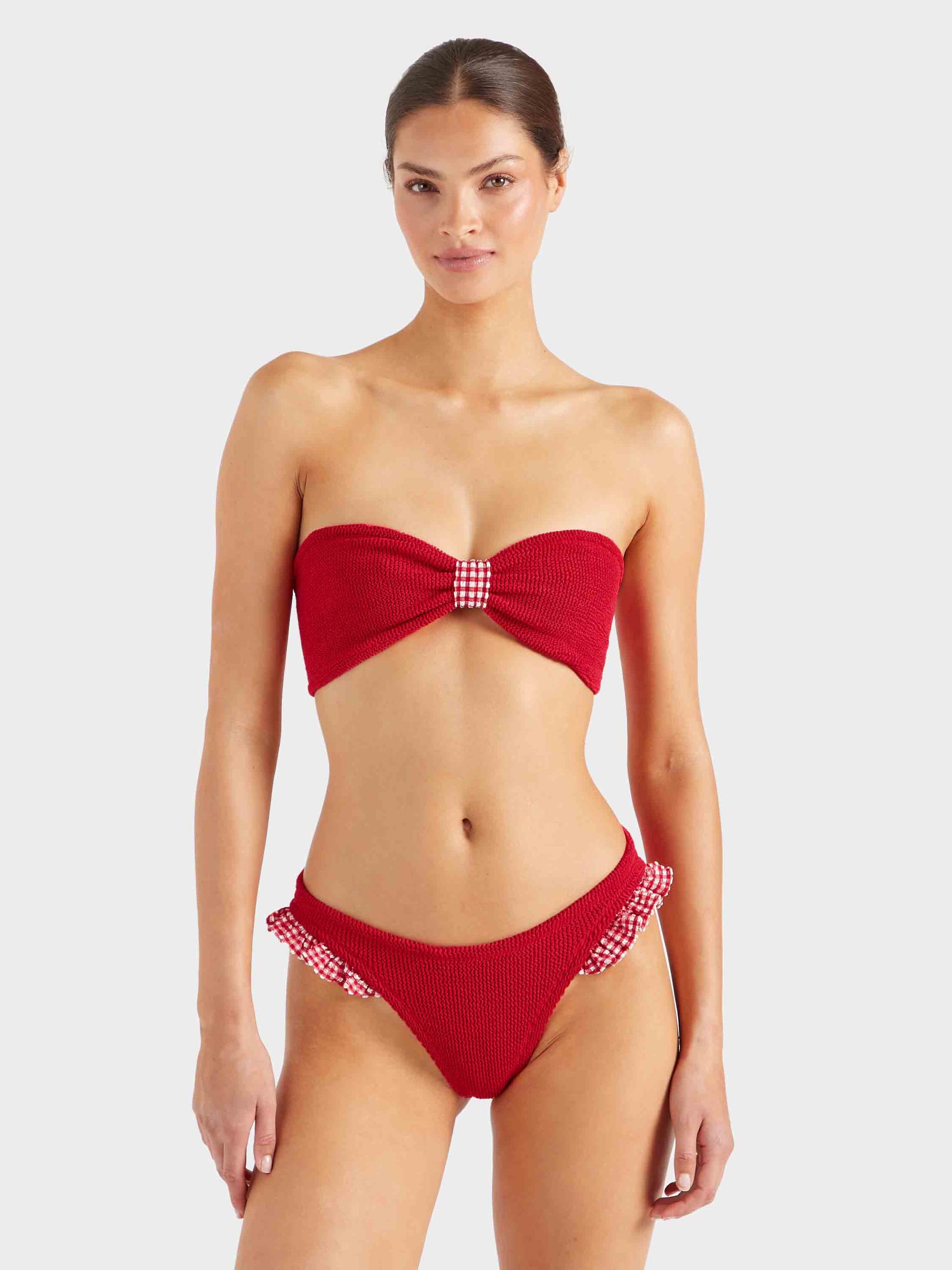 Gingham Seersucker Sabrina Bikini - Red Gingham