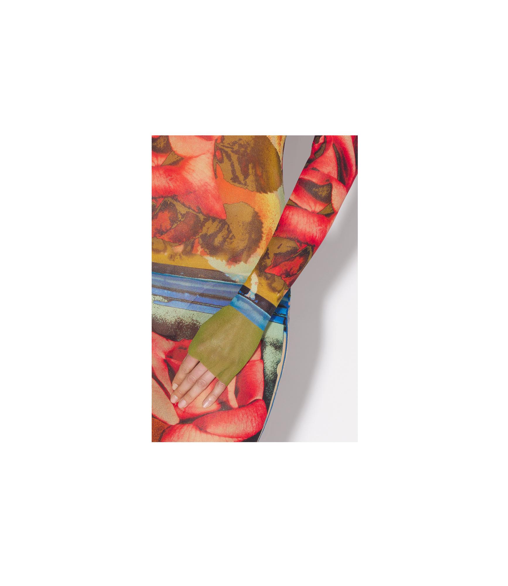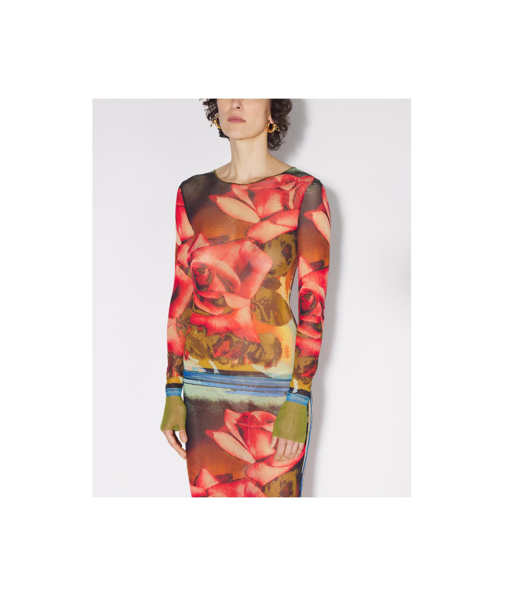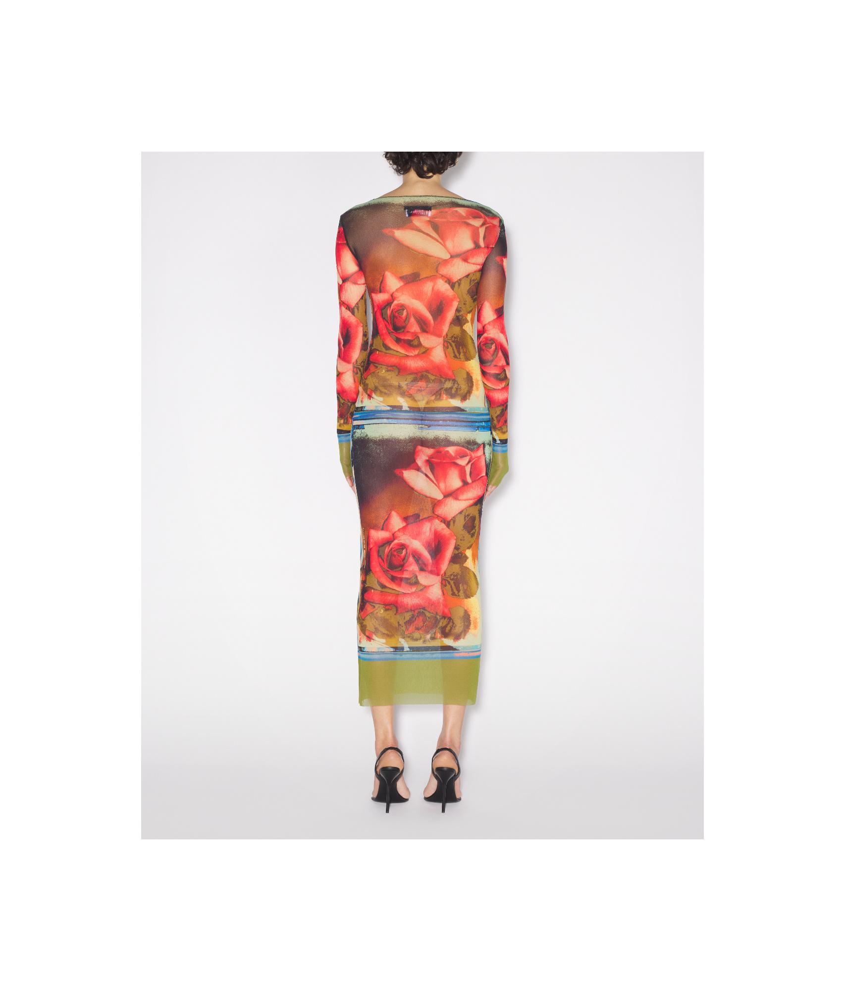 Shop Jean Paul Gaultier Rose-print Mesh Midi Dress In Multicolor from 800+ stores, starting at $240. Part of its ongoing 'Flowers' collection, Jean Paul Gaultier's dress has a hazy graphic print that nods to collections from the '90 and '00s. It's cut for a figure-skimming fit from sheer stretch-tulle, so be sure to style yours over a slip.
