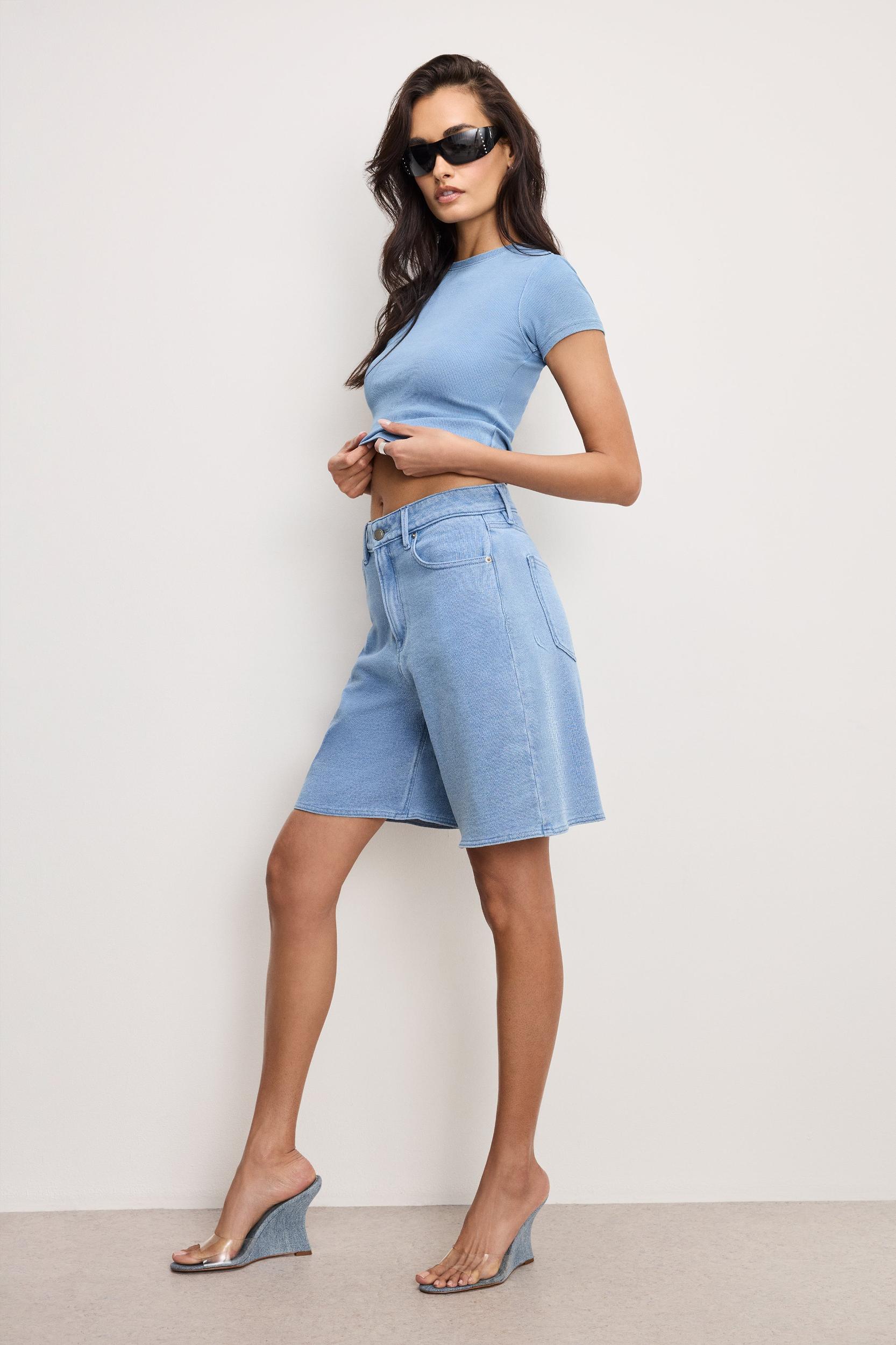 The Jeanius Good Ease Bermuda Shorts look like denim, feel like sweats. With a relaxed fit and soft fabric, they offer a comfy, lowkey look. The classic Bermuda length keeps it simple and easy. Classic 5-pockets Front zip-fly closure Gap-proof waistband Reinforced belt loops Tummy smoothing technology Medium light blue wash Inseam: 9.5" Fabric: 100% Cotton Care: Wash inside out in cold water. Hand wash with like colors. Do not bleach. Hang or lay flat to dry. Do not dry clean.