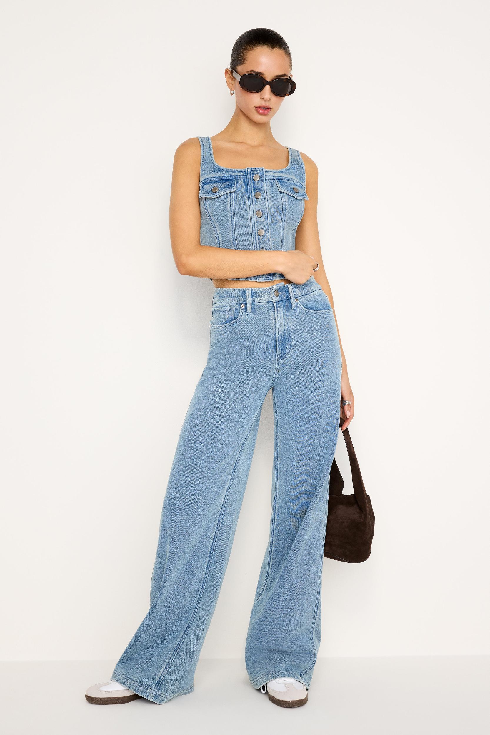 Looks like denim, feels like sweats. The Jeanius Good Skate Sweatpants are our statement-making sweatpants with extra leg room, for that laid-back oversized look. Dress them up with heels or dress them down your favorite sneakers for the perfect mix of casual and cool. High-rise Wide legs Classic 5-pocket styling Front zipper closure Inseam: 34" Fabric: 100% Cotton Care: Machine Wash Cold, Tumble Dry Low Model size 0 is 5'9 is and wearing size 0 Model size 16 is 5'9 and wearing size 16