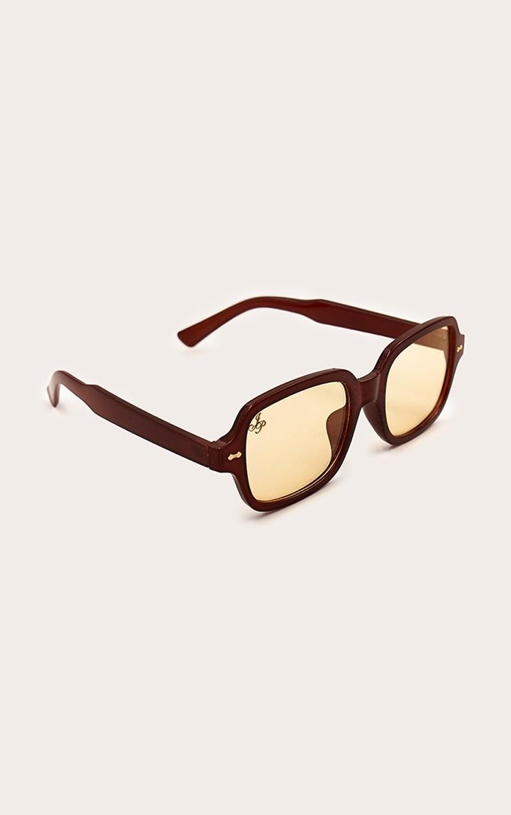 Elevate your accessories with this jeepers peepers red aviator frame yellow lens sunglasses, made for bold everyday styling. Brought to you in a burgundy-toned frame with squared edges and brown lenses, they add a retro-inspired touch. Style with a relaxed blazer and minimal jewelry for a cool, off-duty vibe. UV Protection Not for protection against direct sunlight. Non-prescription sunglasses. Not for protection against artificial light sources such as solaria. Not for use as eye protection against mechanical impact. Not suitable for night driving. Do not use abrasive detergents or sprays. Wipe clean only.p]:!mb-4inch>Category: AccessoriesProduct type: Square FrameColor: OrangeMaterial: PlasticOccasion: Day
