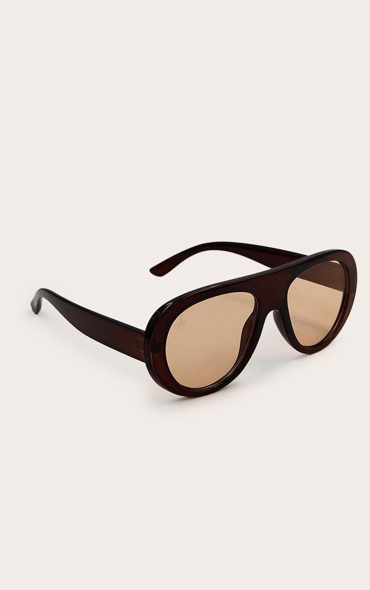 Brown frame Brown lenses Chunky style 100% UV protection Delivery includes inchJeepers Peepersinch drawstring pouch UV Protection Not for protection against direct sunlight. Non-prescription sunglasses. Not for protection against artificial light sources such as solaria. Not for use as eye protection against mechanical impact. Not suitable for night driving. Do not use abrasive detergents or sprays. Wipe clean only. p]:!mb-4inch>Brand: PrettyLittleThingCategory: AccessoriesProduct type: Aviator SunglassesColor: BrownMaterial: PlasticOccasion: Day