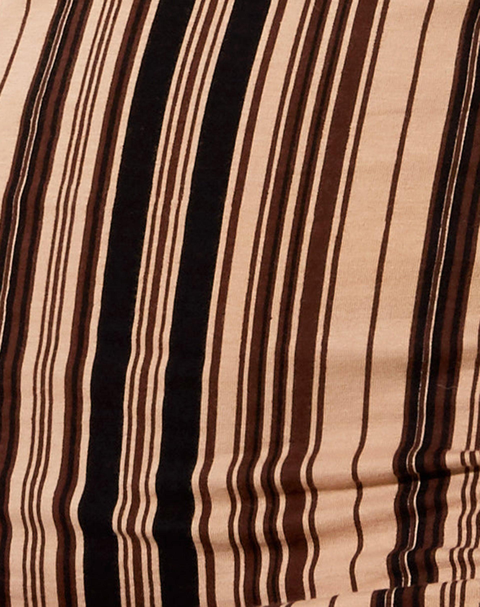 Stand out in stripes with our Jeeves dress. Featuring a bodycon mini fit, short sleeves and button up detail with collar in a brown striped print. We've styled ours with chunky white trainers for a casual look. MODEL WEARS:S - MODEL HEIGHT:5'8 - FABRIC CONTENT: 95% COTTON 5% ELASTANE