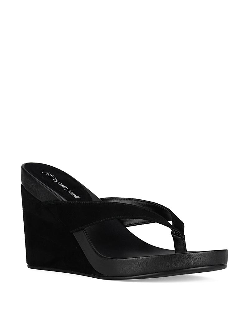 Jeffrey Campbell Womens Liezel Wedge Sandals.Color:Black Suede Combo.Size:6.Material:Suede upper, polyurethane lining, synthetic sole.