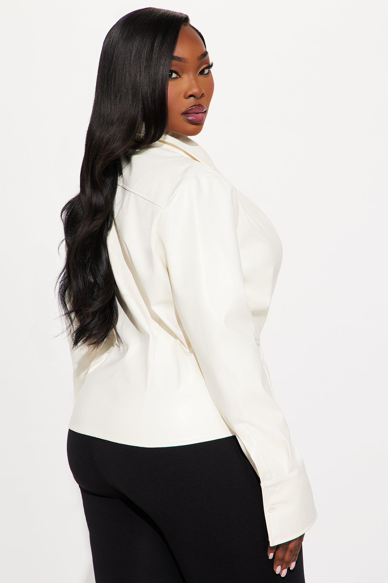 Jelena Twisted Faux Leather Top - Cream