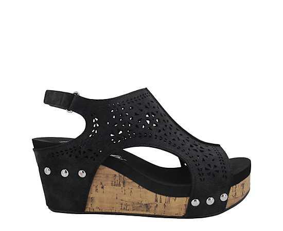 Jellypop Alasia Womens Wedge Sandal Black Show off your edgy style in the Jellypop Alasia wedge Sandal. Made with a faux leather upper featuring studded detailing, this Shoe is a great way to mix up your look. The Cushioned insole comforts your steps, while the cork wedge heel gives a decent lift. Synthetic upper Hook/loop closure Stud detailing Cushioned insole 3 cork wedge heel