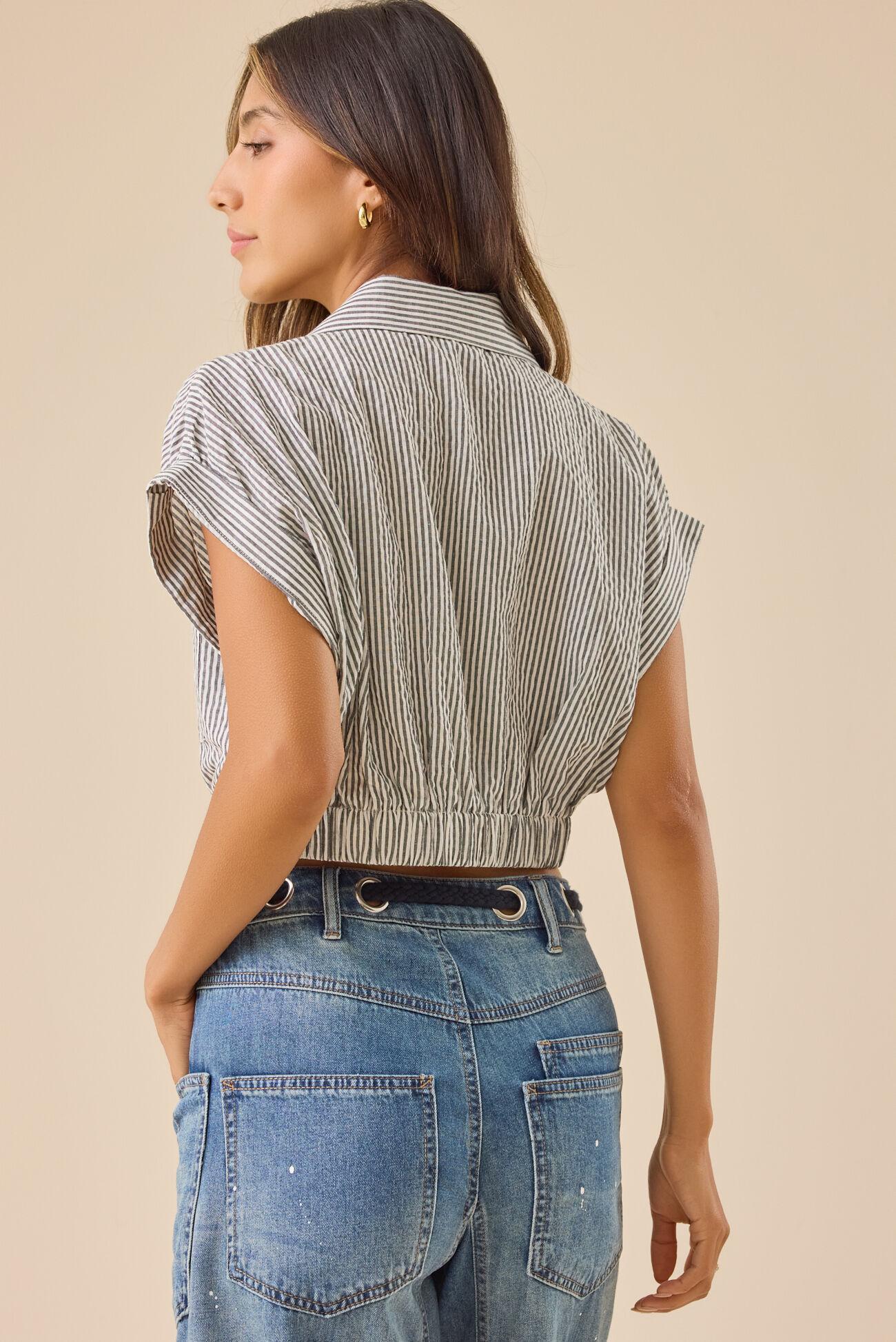 Jenise Striped Crossover Crop Top