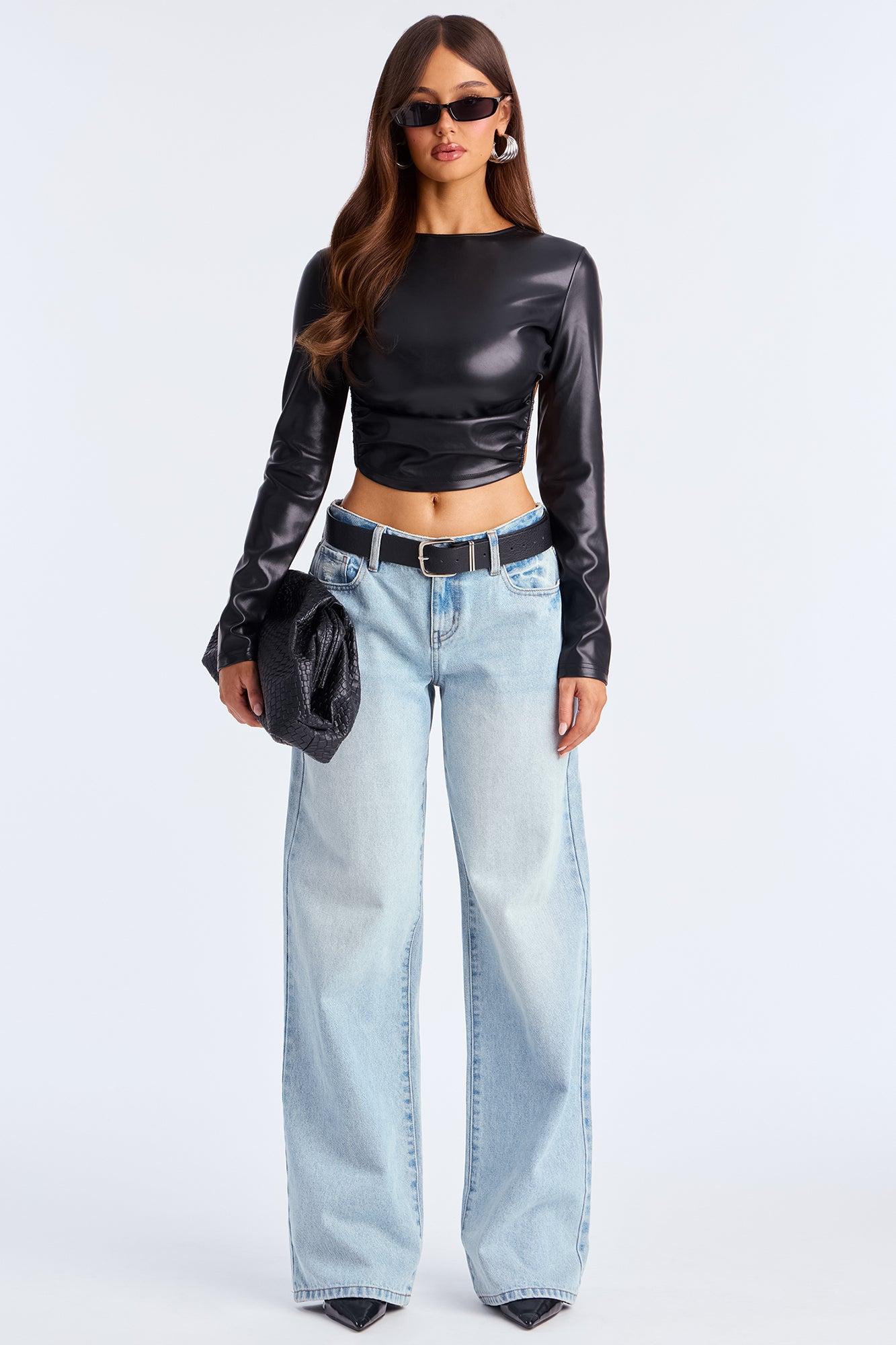 Jenna Faux Leather Backless Top - Black Female