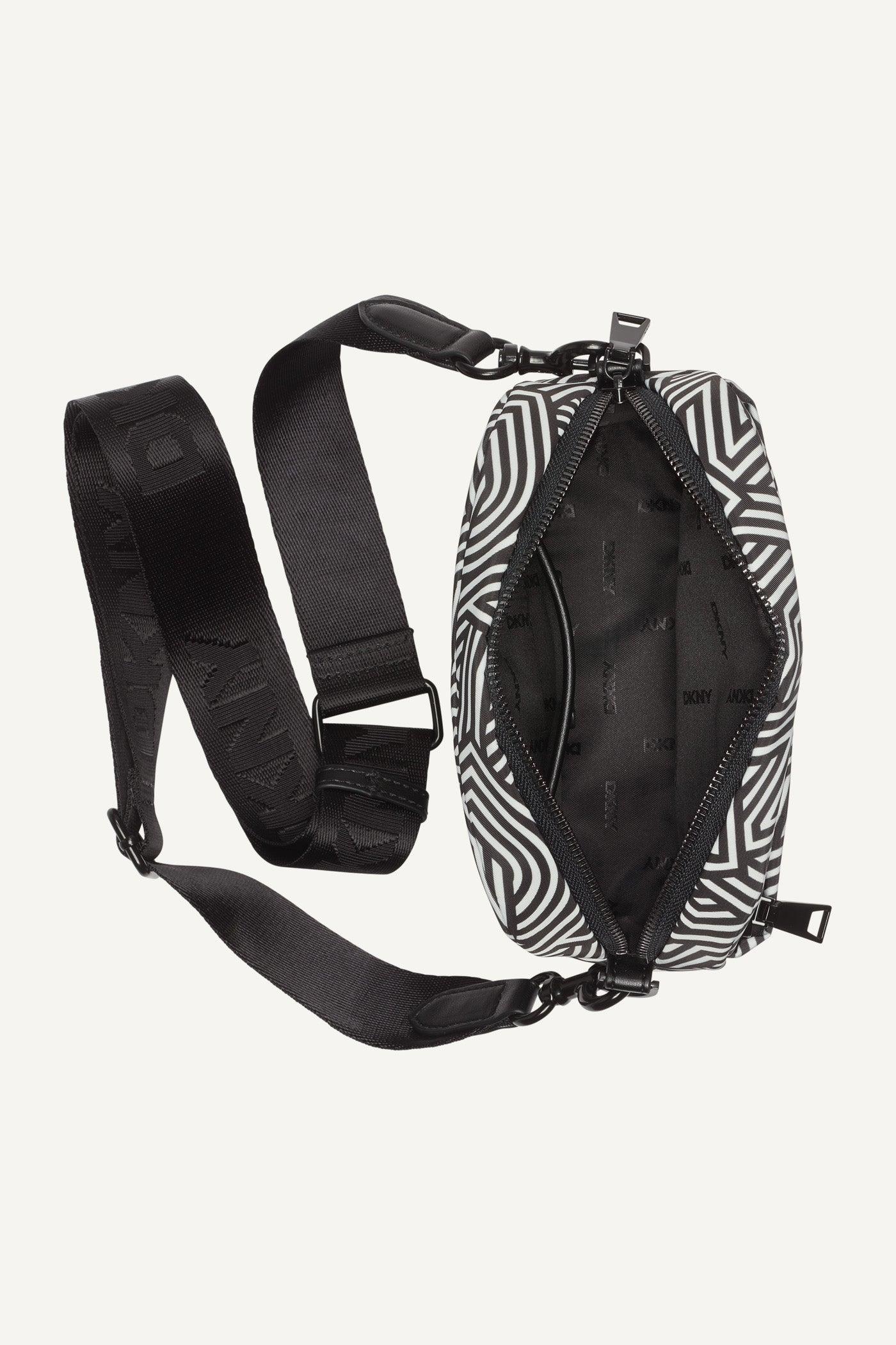 7.67" L x 10.5" H x 4.13" D Strap: 23" Drop Zipper closure Crossbody strap Interior slip pockets Logo front 100% Polyurethane Origins: Imported Style: R44EZI35