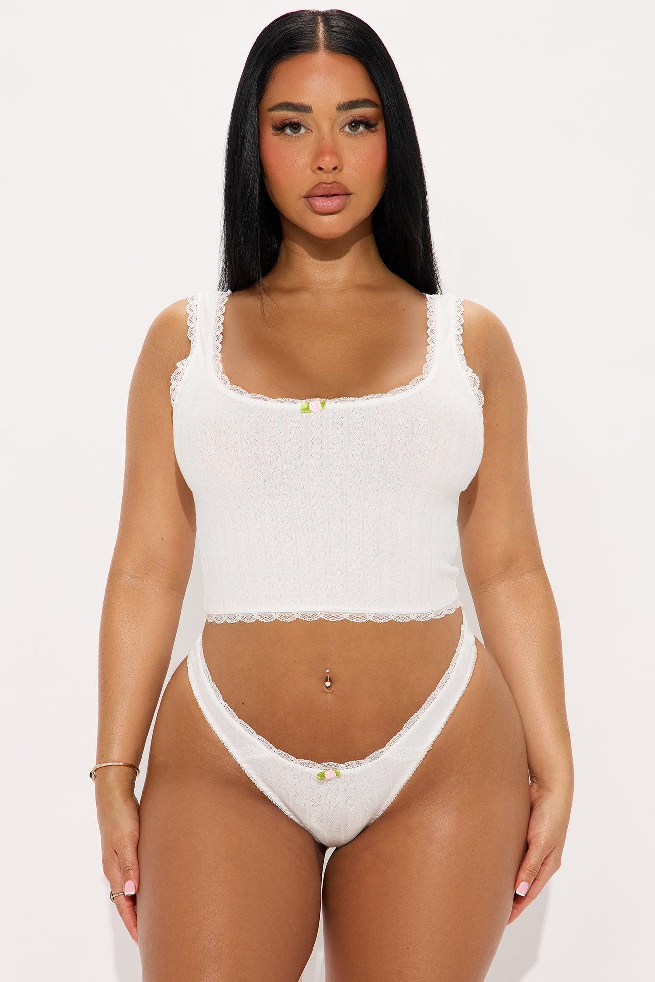 Jenny Pointelle Rosette Tank and Thong 2 Piece Set - White Female