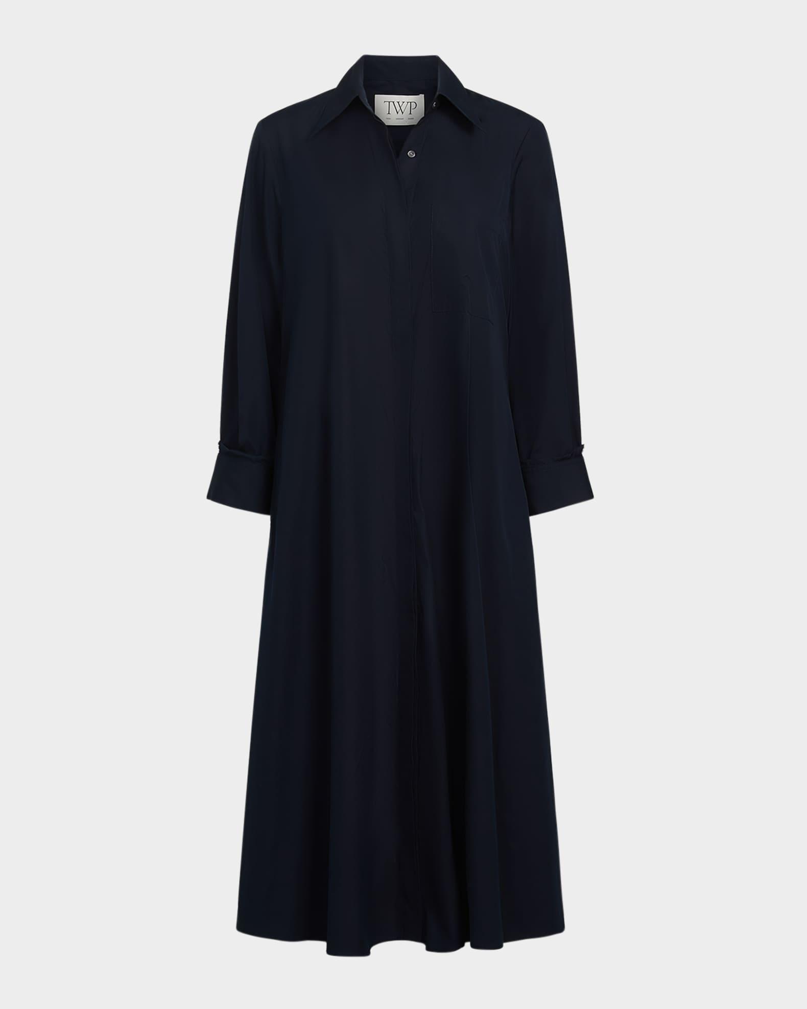 TWP "Jennys Gown" poplin shirtdress Spread collar; concealed button front Long sleeves; single-roll button cuffs Single chest patch pocket Side seam pockets Box-pleated back yoke Full length A-line silhouette Cotton Dry clean Made in USA from imported materials