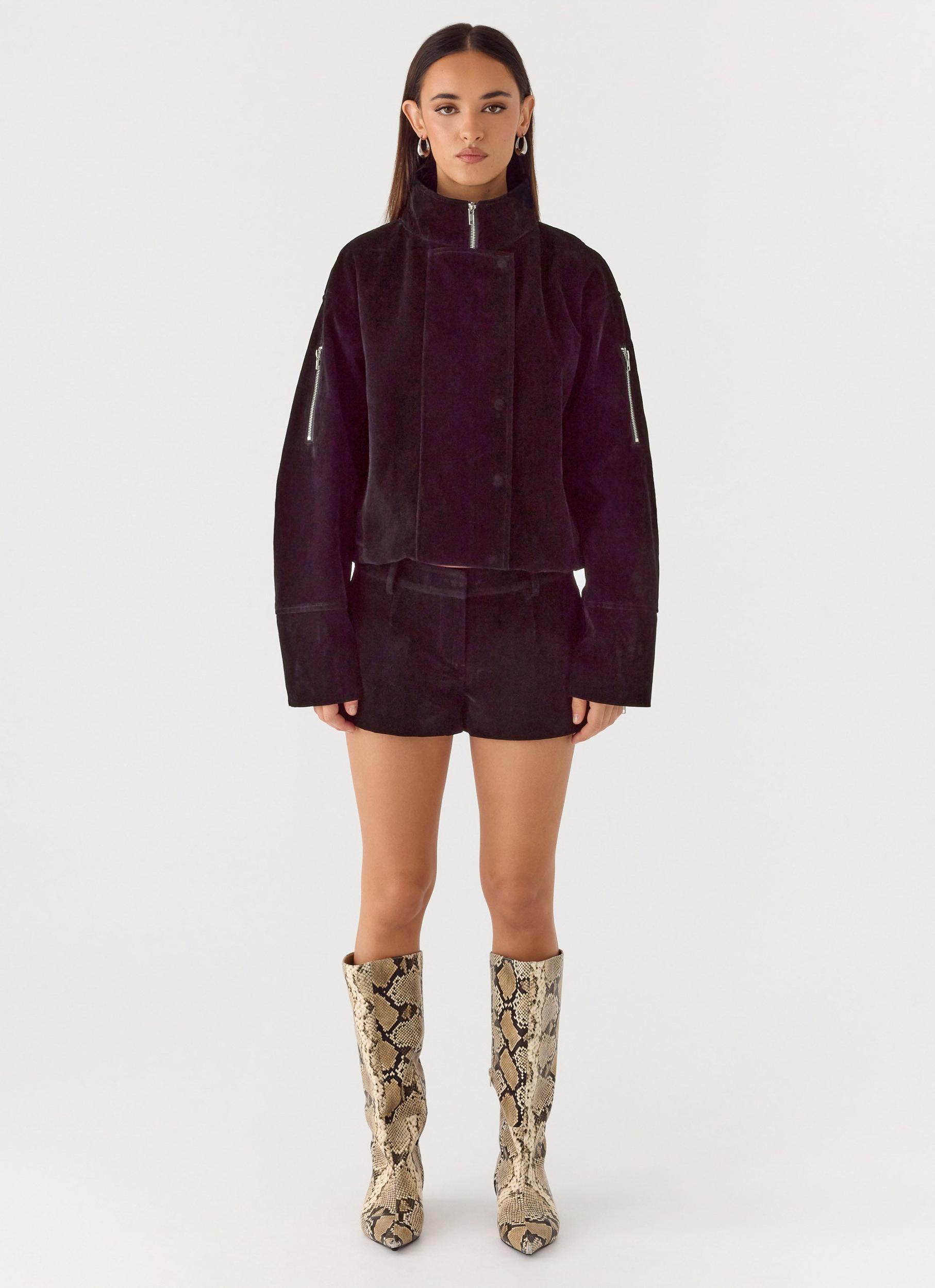 Peppermayo Exclusive The Jeremy Faux Suede Shorts are made for elevated daytime looks with a hint of edge. Sitting low on the waist with a mini length silhouette, these shorts are crafted in soft faux suede for a luxe feel. Fully lined and finished with an invisible zipper and pockets, they’re perfect for styling from brunch to sunset drinks. - Low rise- Mini length- Suede fabric- Fully lined- Invisible zipper- Pockets- Fabric: 50% PU, 50% Polyester Size AU 8 / US 4 garment measurements: Length: 26 cm / 10.24 inWaist: 78 cm / 30.71 inHip: 103 cm / 40.55 in Roberta is 177cm and wears size AU 6 / size US 2