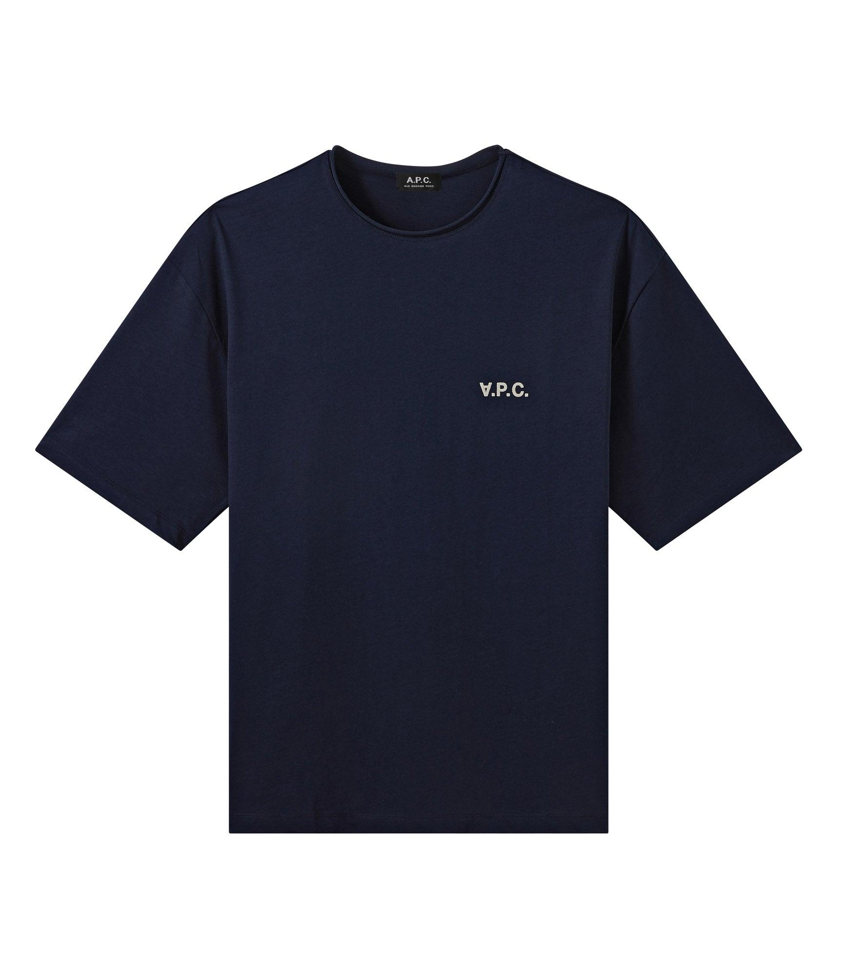 A.P.C. Men's T-shirt. - Straight cut.- Crew neckline.- Flocked black V.P.C. with velvet feel.- 100% Cotton from organic farming.