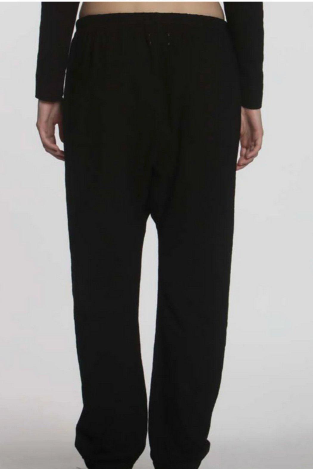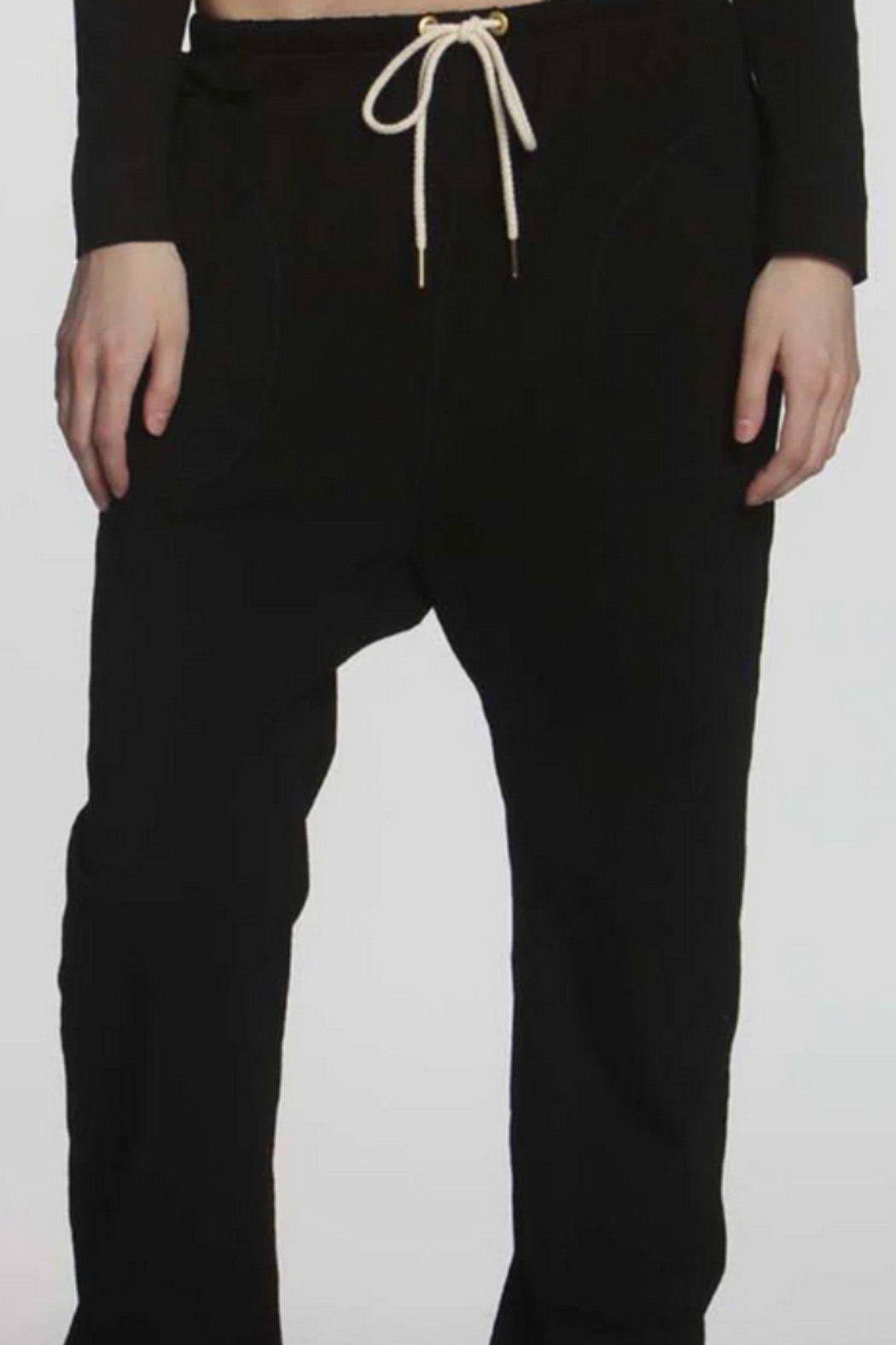 he great thing about the Jerri Lounge Pant is that you can do so much more than just lounge in it! Designed with life in mind, it features on-seam side pockets for when all other storage seems out of reach. Two big back patch pockets double as coverage and a place to put the smaller things when on the go. Matte gold grommets and a tightly woven drawstring tipped with metal tips. The waistband features interior elastic, a detail essential to a securely fitting pull-on pant. The fit is relaxed with a high rise that allows you to wear it at the waist for a moderately slouchy look. You can also opt to wear it low riding with a dropped rise for a super slouchy fit The saddle is reinforced with a shaped and seamed gusset. Made from our washed cotton slub jersey with a firm, soft hand that only gets better with every wash. Tonal cover stitching and design identity match our Ava and Rebel tees.